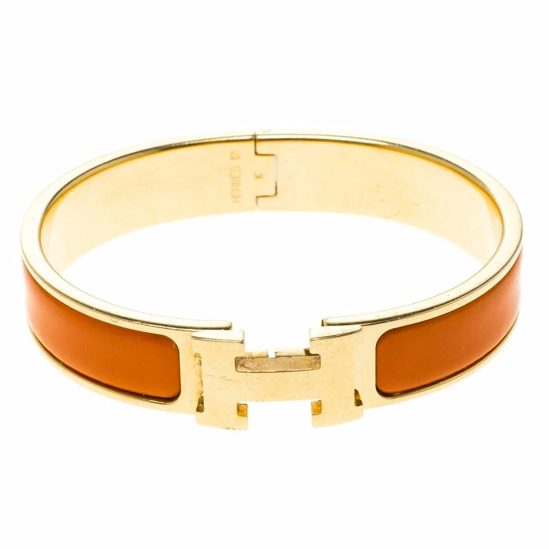 Hermes Clic Clac H Orange Enamel Gold-Plated Narrow Bracelet PM For Women