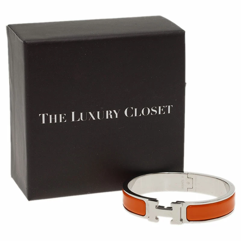 Let your jewelry speak for you with this Hermes orange enamel narrow bracelet. It’s just perfect for those beach summer days! This bracelet is crafted with palladium-plated metal, and the cherry on top is the signature Hermes ‘H’ logo at the front. It will definitely style up any outfit in your closet.