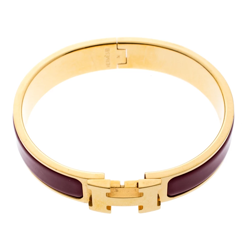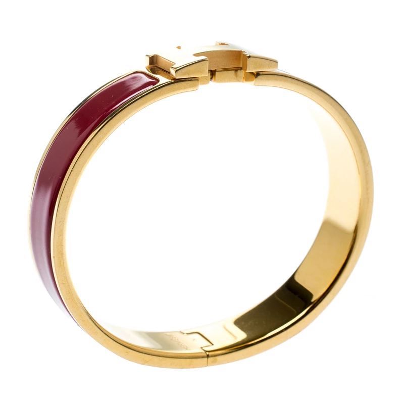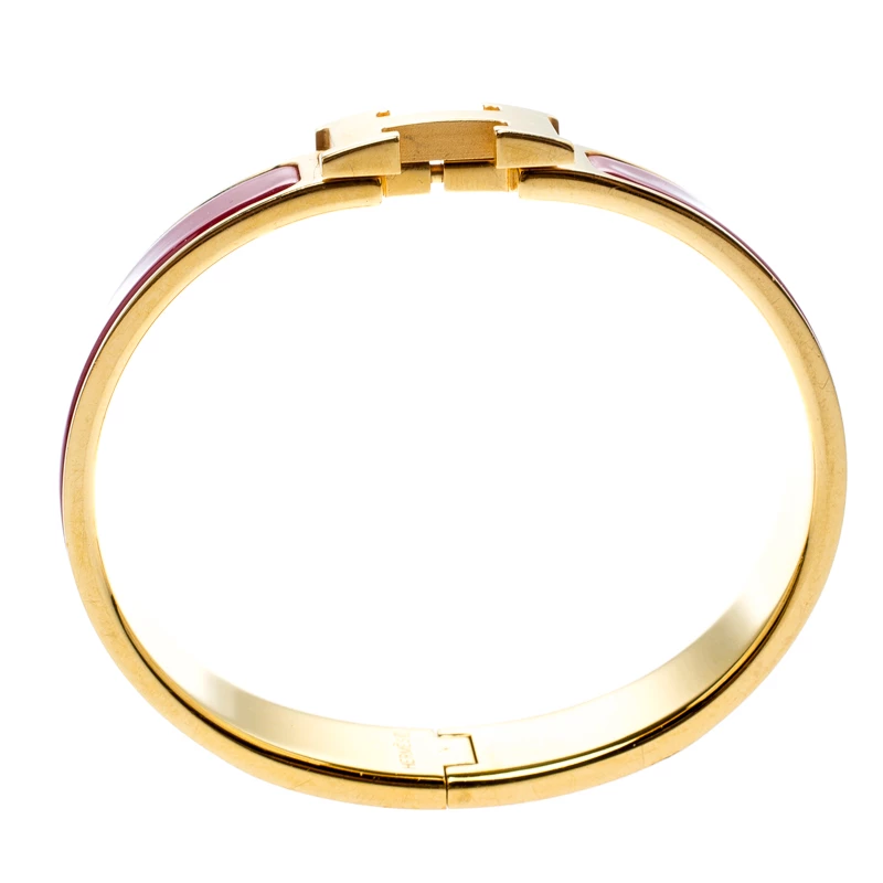 Ace the accessory game when you adorn your wrist with this stunner of a bracelet from Hermes. The piece is from their Clic Clac H collection and it has been crafted from gold-plated metal and designed with enamel. This bracelet is complete with the iconic H.
