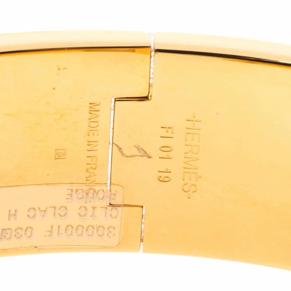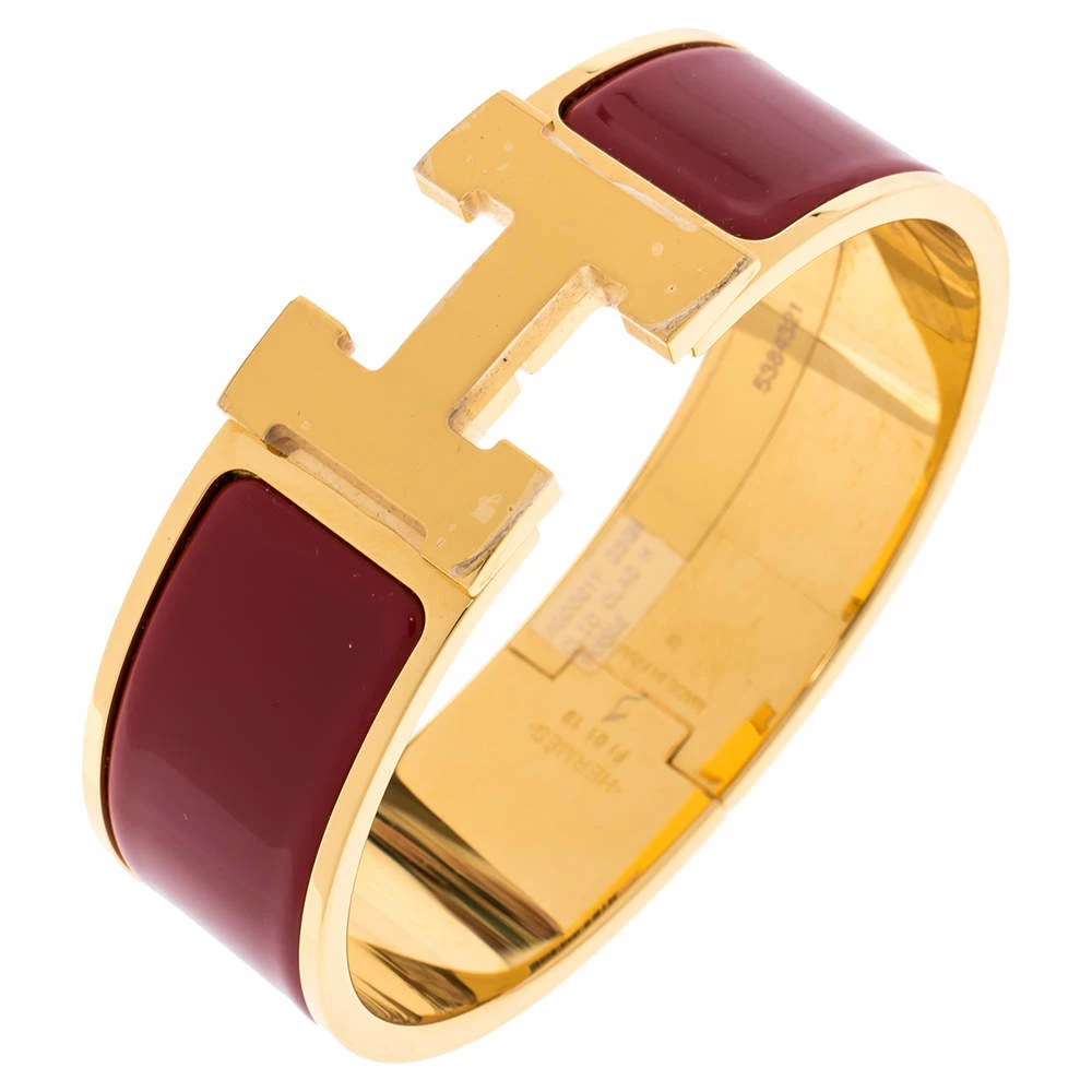 Adorn your wrist with this stunner of a bracelet from Hermès. The piece is from their Clic Clac H collection and it has been crafted from gold-plated metal and designed with rouge enamel. This bracelet is complete with the iconic H. Get those compliments you longed for as you pair it with your everyday outfits!