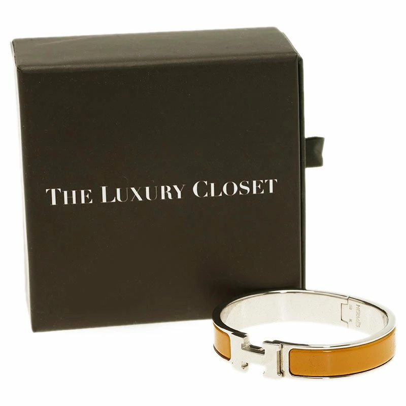 This Hermes bracelet could be the most delightful addition to your jewelry collection. It has been crafted in curry yellow enamel and features a palladium plating. The Clic Clac H closure in silver-tone looks truly magnificent. Wear this at work or with casual outfits for a gorgeouse unique style statement.
