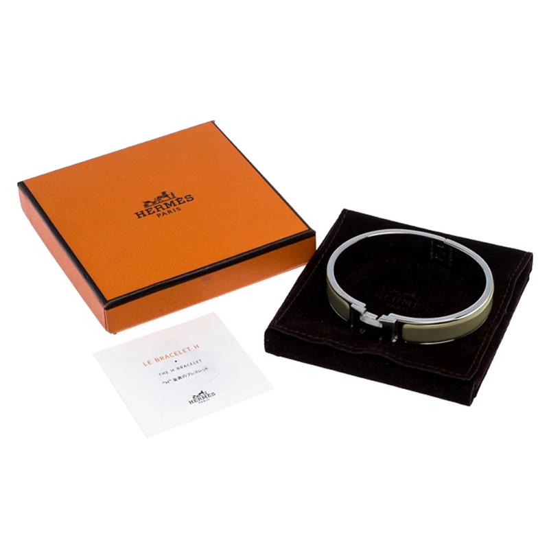 One of the most popular designs from Hermes when it comes to accessories is the Clic Clac. The Clic Clac H collection is a hit amongst fashionable women and it’s time you have one yourself. This piece has been crafted from palladium-plated metal and designed with yellow enamel and made complete with a swivel H.