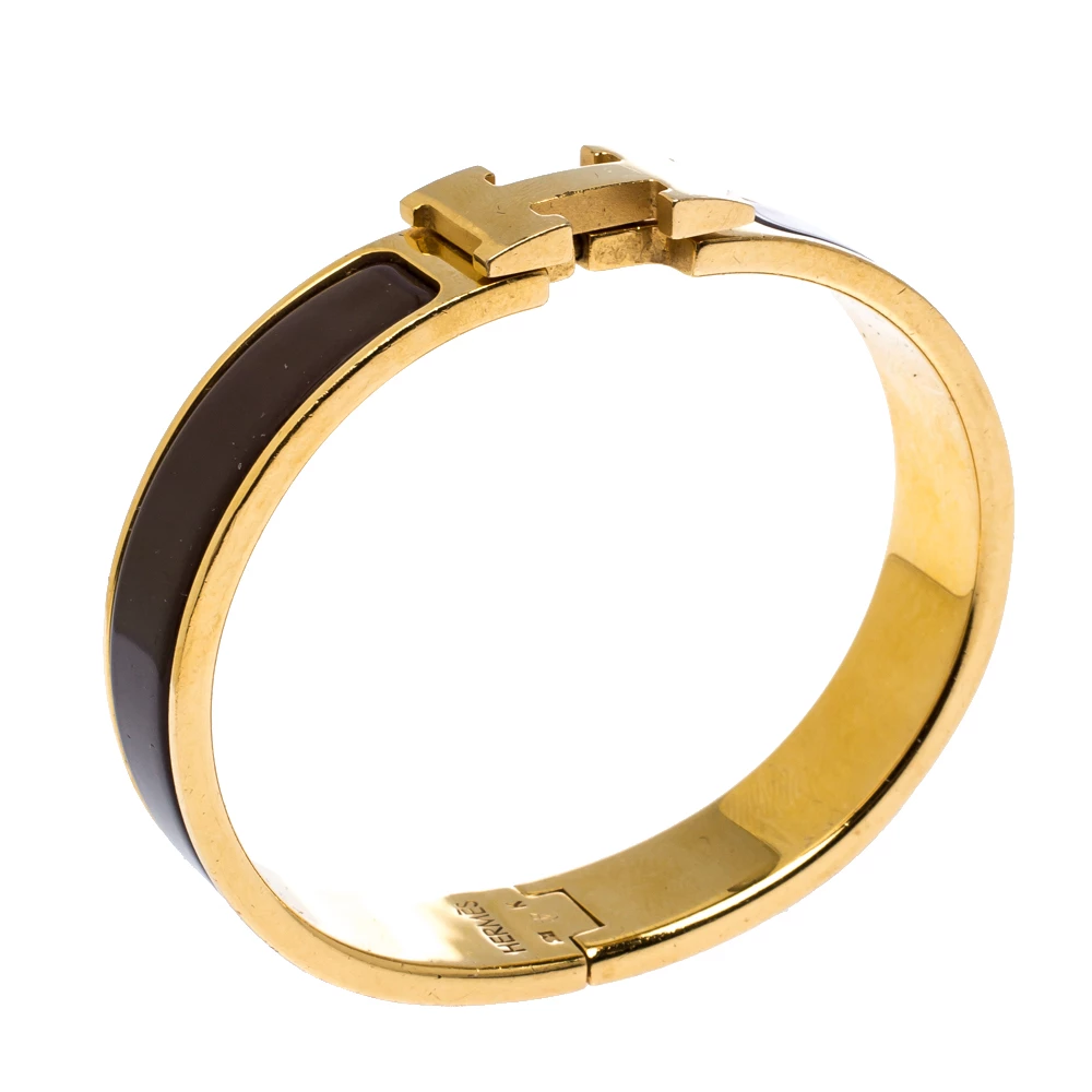 A popular design from Hermes when it comes to accessories is this one. It is a hit amongst fashionable women and it’s time you have one yourself. This piece has been crafted from gold-plated metal and designed with brown enamel and made complete with a swivel H.
