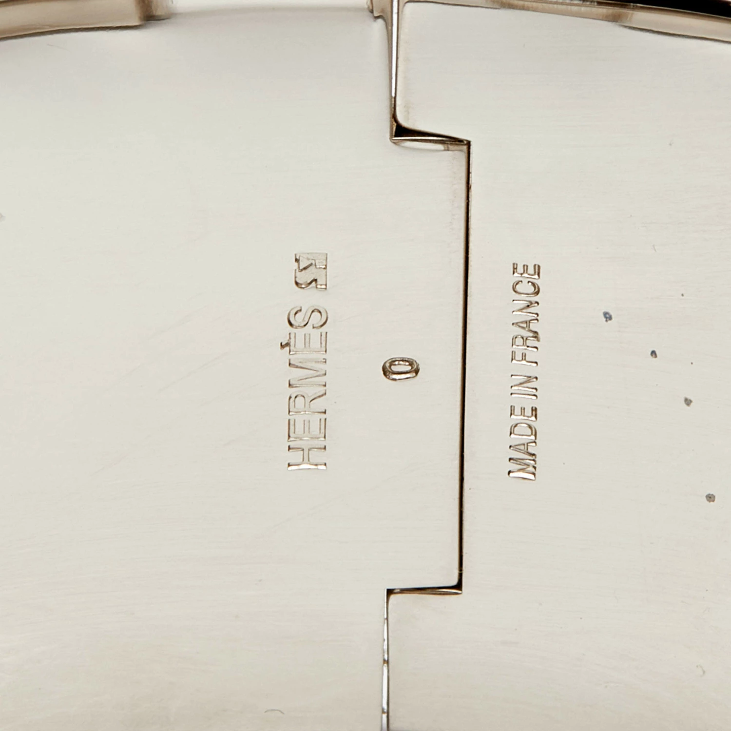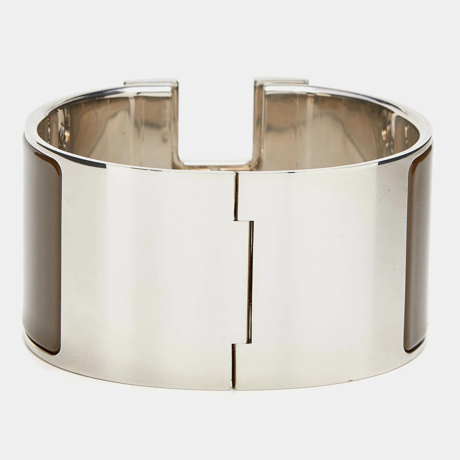 Adorn your wrist with this lovely bracelet from Hermès. The piece is from their Clic H collection and it has been crafted from palladium-plated metal and designed with brown enamel. This bracelet is complete with the iconic H.