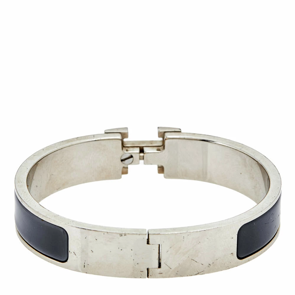 This bracelet embodies Hermes’ elegant craftsmanship with its palladium-plated metal body coated with grey enamel. Featuring the iconic H logo of the fashion house, this bracelet is a perfect accessory to look sophisticated in a formal or a casual outfit.