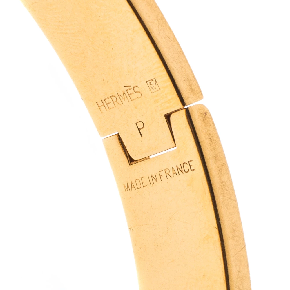One of the most popular designs from Hermes when it comes to accessories is the Clic H. The Clic H collection is a hit amongst fashionable women and it’s time you have one yourself. This piece has been crafted from gold-plated metal and designed with orange enamel and made complete with a swivel H.