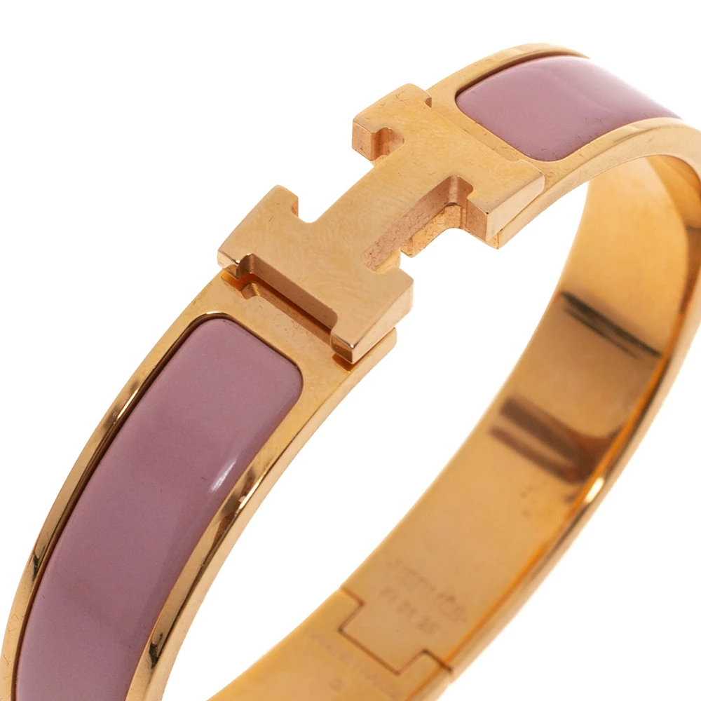Ace the accessory game when you adorn your wrist with this stunner of a bracelet from Hermes. The piece is from their Clic H collection and it has been crafted from gold-plated metal and designed with enamel. This bracelet is complete with the iconic H at the centre.