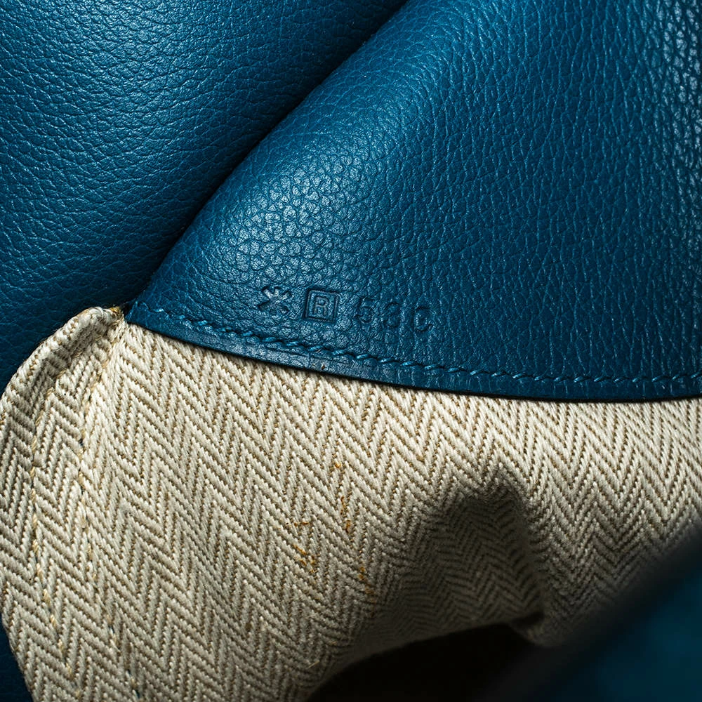 Introduced in the Spring Summer 2014 collection of Hermes, the unique shape and one-of-a-kind handle setting make Oxer a delightful addition to any closet. This one in blue is crafted from leather featuring the signature shape along with four handles, two on the top and one at the front the other at the rear. Oxer has an insanely spacious interior lined with canvas and a shoulder strap for added convenience.
