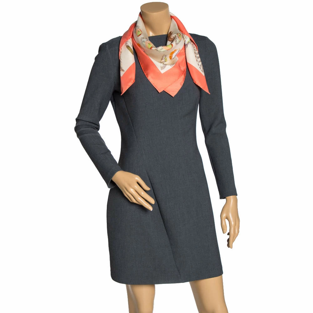 Add this scarf from Hermes in your daily ensemble for an awesome look. It is cut from 100% silk and is adorned in a lovely print all over in the shades of coral and beige shades.