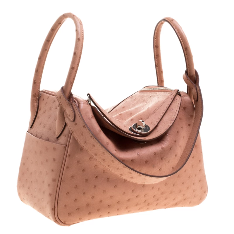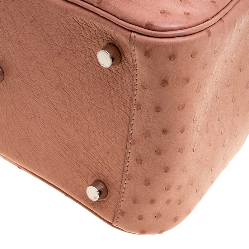The Hermes Lindy was first designed in 2006 and it is recognised worldwide for its relaxed design. A creation of exemplary craftsmanship, the Lindy 26 sweetly embodies ladylike elegance with a whimsical touch! Exquisitely crafted from ostrich skin, the bag has been designed to be carried by hand and on the shoulder. It features palladium hardware, a turn lock closure on the flap and protective metal feet at the bottom. The bag also has a leather-lined interior that can easily carry your necessities. Versatile in design, this bag is simply magical and worth every bit the splurge.
