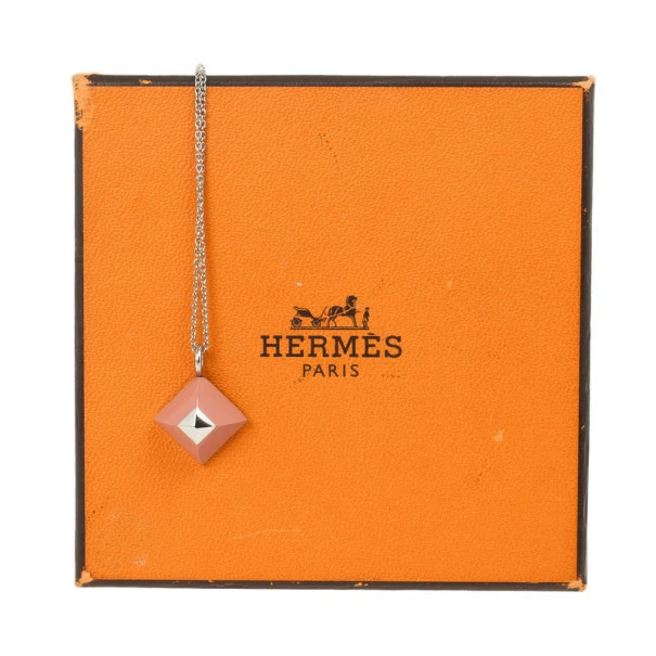 Dress up a casual look with this minimally designed Hermes Cupidon Pendant Necklace. It is beautifully crafted from silver-tone metal and features a rhombus shaped lacquered pendant and a spring ring closure.Original Retail Price: US $355Pendant Length:22 MM
