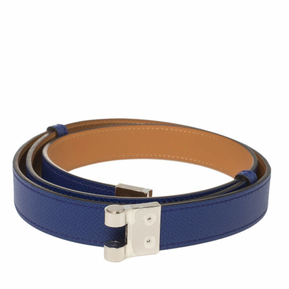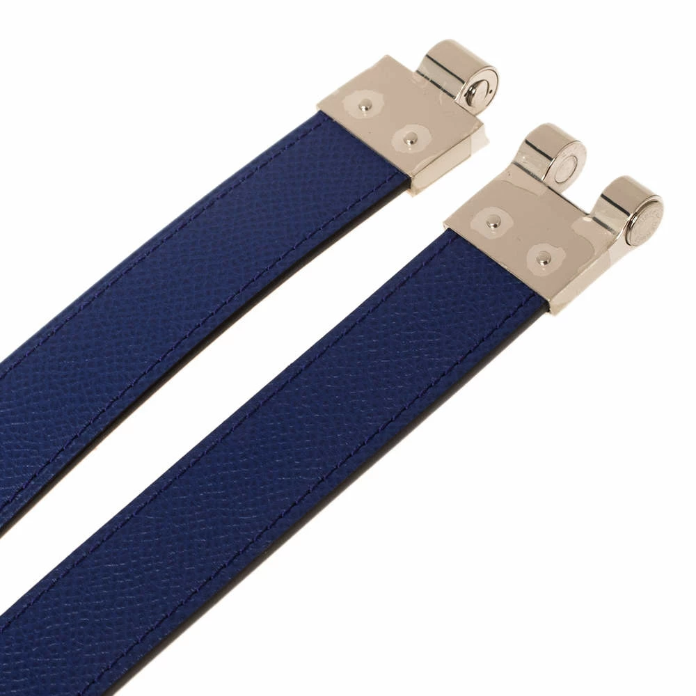 Accessorise like a style icon using this amazing Charniere belt by Hermes. The piece is crafted from Epsom leather in an electric blue hue and completed with a palladium-finished metal push-lock that seamlessly fastens it.