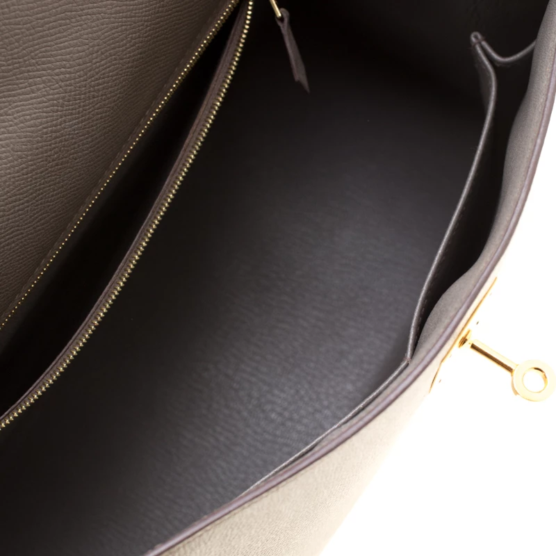 First designed by Robert Dumas as a functional bag for independent women, the Kelly bag is a name respected and loved around the world. Years ago, it was launched to a rather demure response, but today, it is revered as more than just a fashion symbol but a real investment. The bag is characterised by two pyramid gussets on the sides, a turn lock on the flap, a top handle and a shoulder strap. This Sellier version is a wondrous work of art stitched by hand using Epsom leather, and unlike the Retourne, it has a structured shape with sharper edges. On this bag, the iconic lock is fitted in brushed gold hardware, a padlock with its key within the clochette, and the flap grandly leading to a well-sized leather interior. Of course, this Kelly is a classic but what must be noted is the fact that it has undergone the work of talented artisans, with every stitch giving praise to high quality and authenticity.
