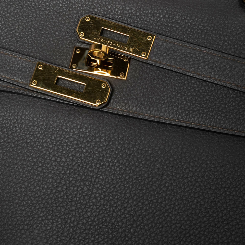 The Hermes Kelly is beautiful as it is carefully hand-stitched to perfection. This Kelly Retourne is crafted from Togo leather and has gold-plated hardware. Retourne has a more casual look and is stitched on the inside thus making its edges softer. The bag comes with a turn-lock closure, a single top handle, and a padlock with its keys within a clochette. The leather-lined interior has enough space to easily fit in all your daily necessities. Invest in this beauty today!