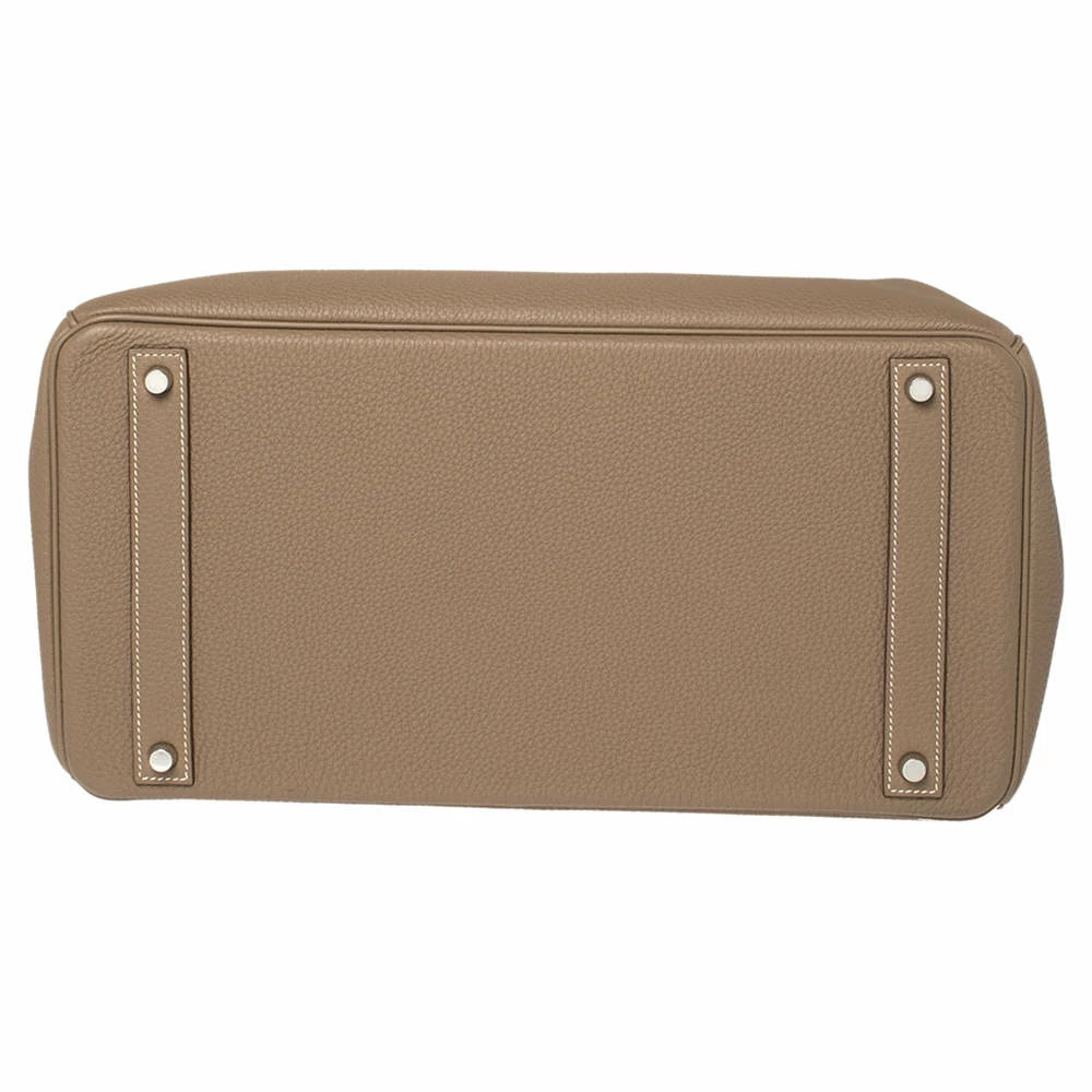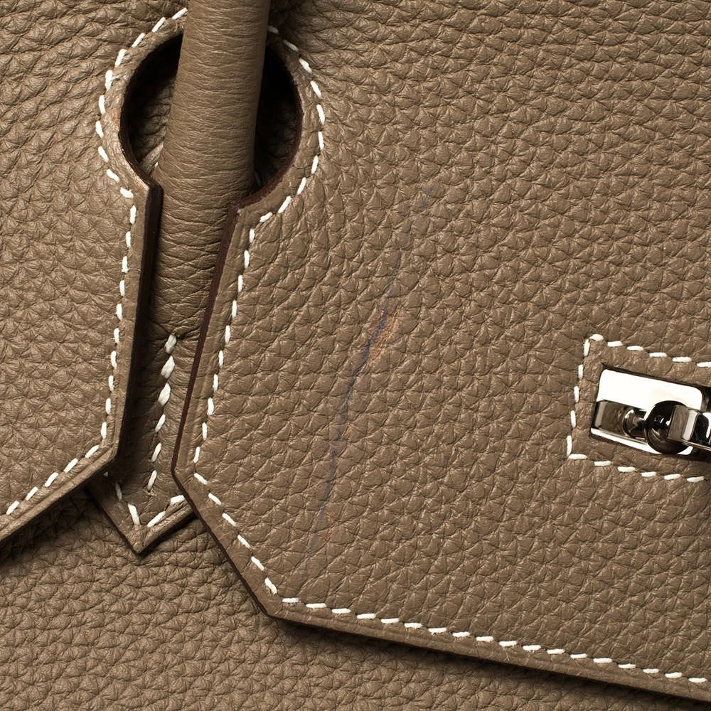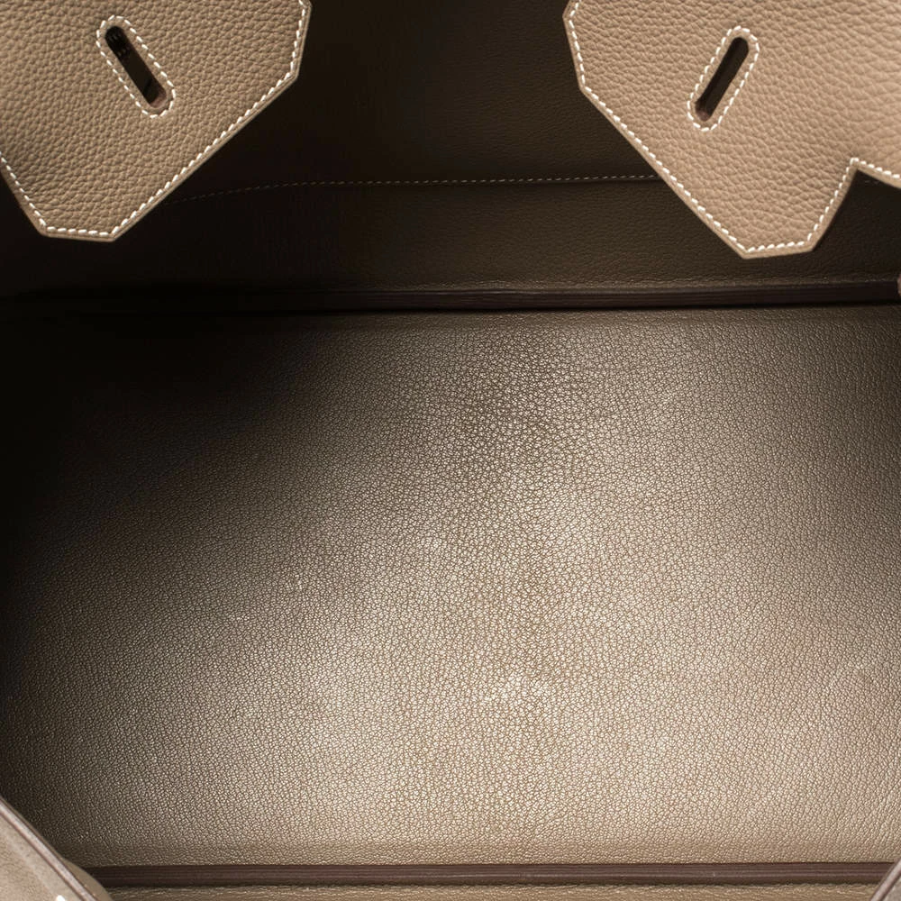 Hermes Birkin was inspired by Jane Birkin and is one of the most desired handbags in the world. A timeless classic that never goes out of style. Handcrafted from the highest quality of leather by skilled artisans, it takes long hours of rigorous effort to stitch a Birkin together. Crafted in France from Togo leather, the bag features dual top rolled handles and a padlock with its keys within a clochette. The bag comes with palladium hardware and has a spacious leather-lined interior that will hold all your belongings. High quality and flawless craftsmanship are synonymous with Hermes. Durable and resistant to wear, the Birkin is a heritage that can last many years.