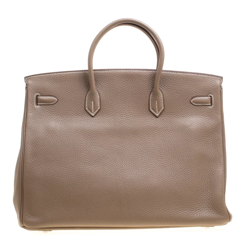 Hermes is known for its flawless craftsmanship and high quality. Hermes Birkin was inspired by Jane Birkin and is one of the most desired handbags in the world. A timeless classic that never goes out of style. Handcrafted from the highest quality of leather by skilled artisans, it takes over 18 hours of rigorous effort to stitch a Birkin together. Crafted in France from Taurillon Clemence leather, the bag features dual top rolled handles and a clochette with lock and two keys. The bag comes with palladium hardware and has a spacious leather lined interior that houses a slip and a zip pocket. Birkin 40 can hold all your daily necessities and more. There has never been a Birkin that was not gorgeous, invest in this collectible as it retains its value year after year!