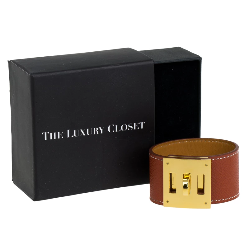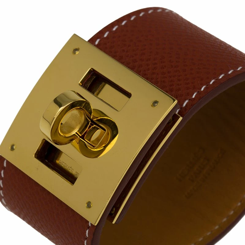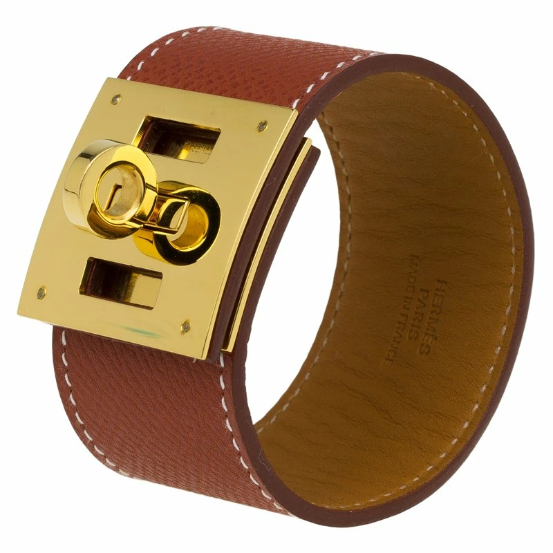 Leave everyone impressed with this amusing piece of jewelry. Made from brown colored leather, the Hermes bracelet features gold-tone twist-ring fastening.