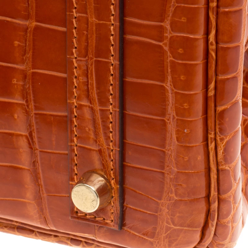 Hermes Birkin is one of the most desired handbags in the world. Handcrafted from the highest quality of leather by skilled artisans, it takes over 18 hours of rigorous effort to stitch a Birkin together. Crafted in France from Fauve Porosus Crocodile the beautiful bag is completed with dual top rolled leather handles, gold-tone hardware, a padlock, keys, a clochette, and protective feet at the bottom. The luxurious Birkin 30 has a spacious interior to hold all your daily necessities. The history and handiwork that comes with a Birkin profoundly elevate its value as a work of art and not just as a handbag. Durable and resistant to wear, the Birkin is a heritage that can last many years.