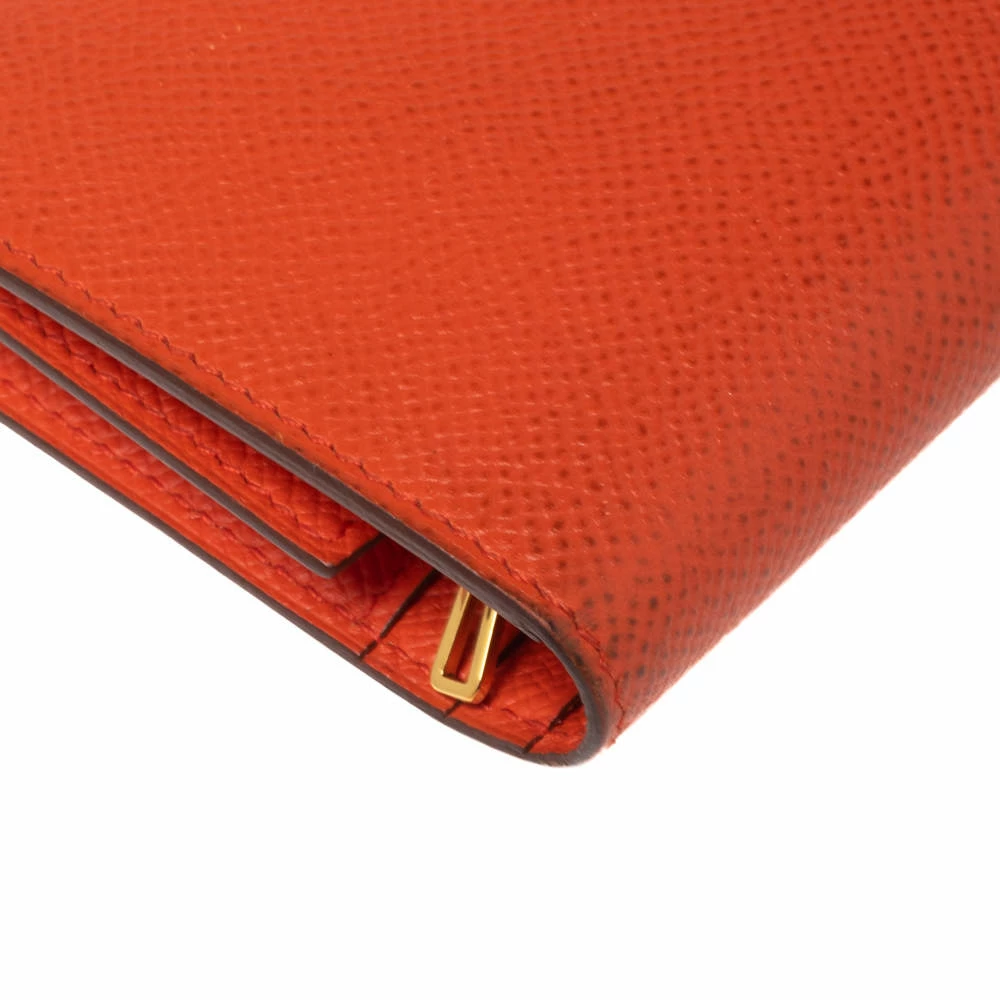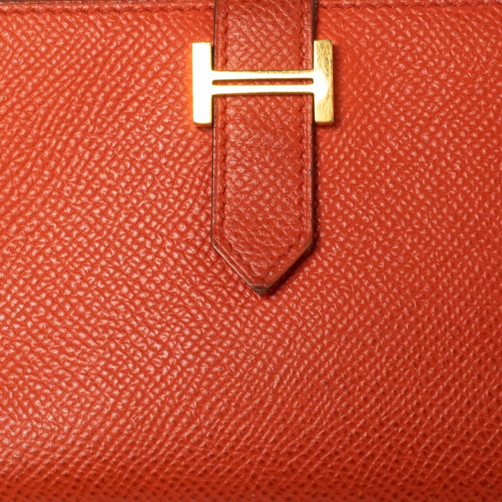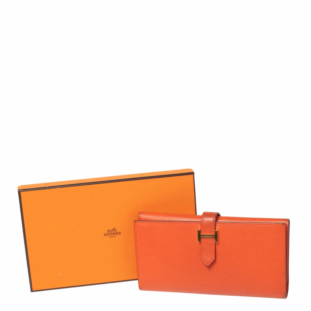Luxuriously crafted by the experts at Hermès, this stunning Bearn wallet is a must-have accessory for luxury fashion lovers. Crafted in Epsom leather, this wallet carries an elegant appeal and a sleek silhouette. It features a gold-tone H on the front strap button closure that opens to a leather-lined interior to complete the look. The interior is composed of multiple card slots, slip pockets, and one zip pocket where you can conveniently store your cards, cash, and bills. This wallet is a charmer that can be carried solo in the hand and can be stowed easily in one of the brand’s luxury bags.