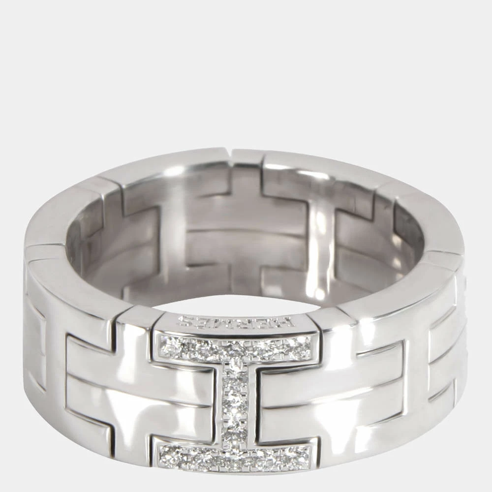 Scintillating diamonds and smooth lines make this Hermes band ring a true work of timeless art. Designed in 18K white gold, this stunning wide band is accented with a sparkling ‘H’ that effortlessly radiates brilliance when catches the light.