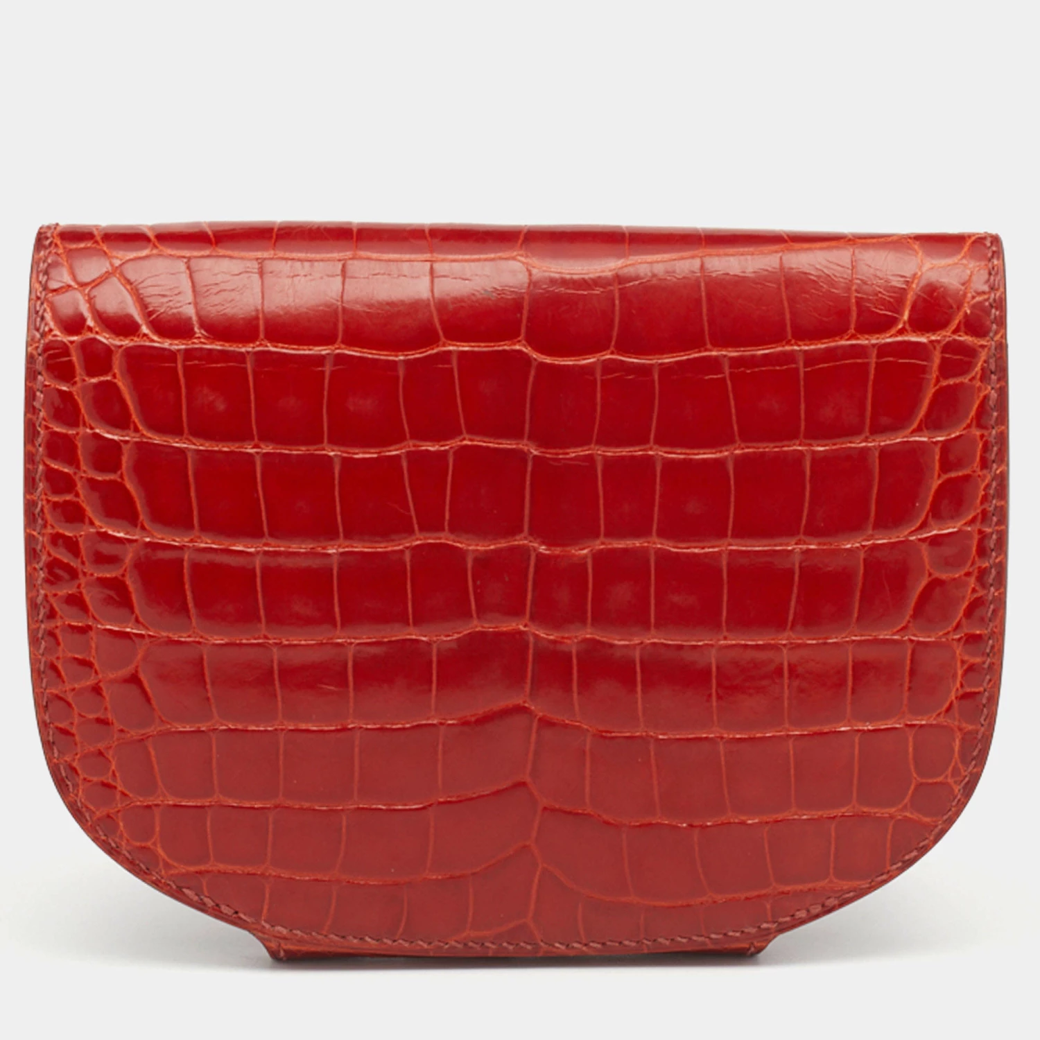 Combining precise craftsmanship with classic style, this mini Convoyeur shoulder bag by Hermes is a creation you’ll love to own. Crafted from alligator leather and designed with a flip-lock on the flap, the piece speaks beauty in every stitch and curve. Complete with a leather interior and a long shoulder strap that allows you to convert it into a crossbody bag, this highly appealing creation will be a luxurious companion.
