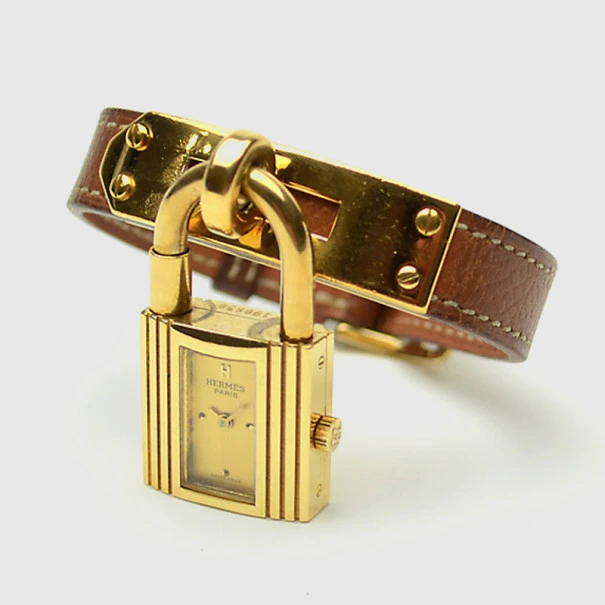 This playful wristwatch by the luxurious Hermes label is the go-to accessory when you’re looking to spice up an outfit. This handbag inspired watch takes its padlock design from the coveted Hermes Kelly. Equipped with a single brown leather strap, this quartz timepiece is protected with sapphire glass and closes on the wrist with a buckle closure.Original Retail Price: US $2,600