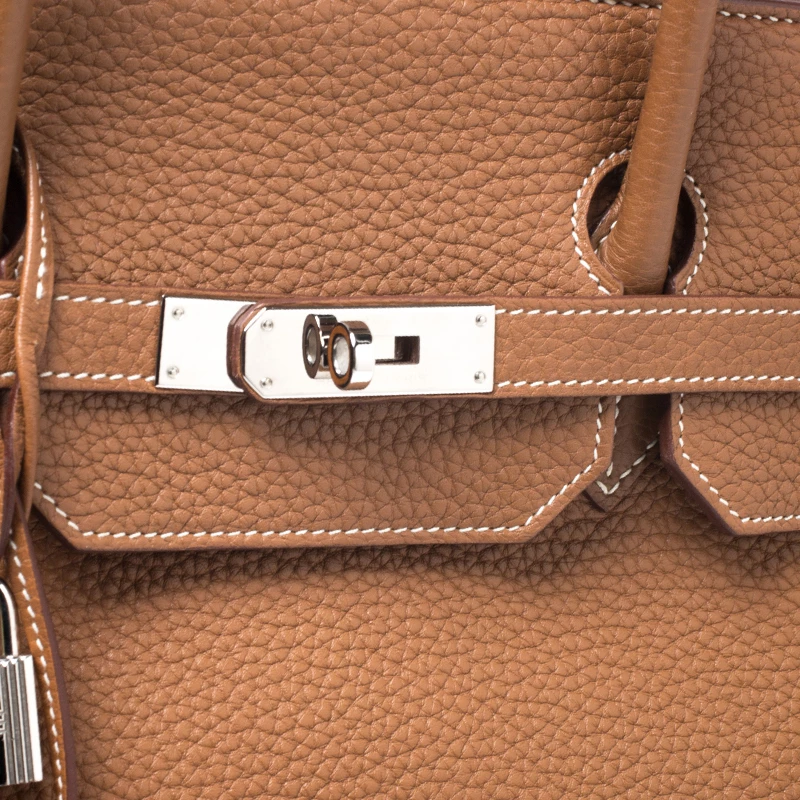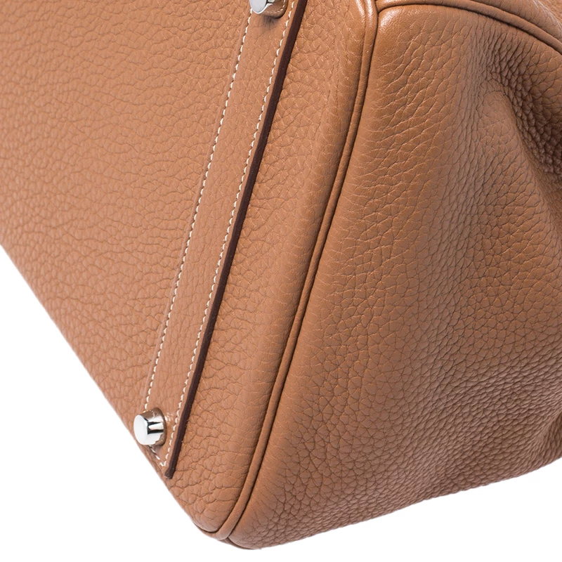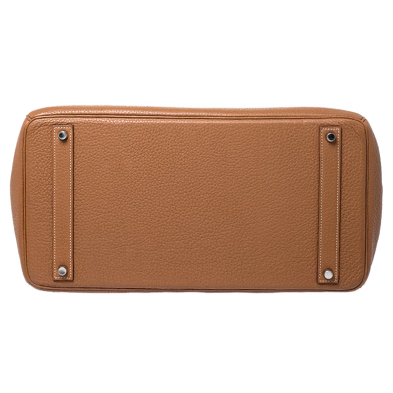 A bag that has become a hallmark of luxury and class, the Birkin from Hermes is one of the most coveted bags in the world. Custom-made on the suggestions of Jane Birkin, hence the namesake, this bag is aimed to fit the wants of the fast-paced life of modern women. Timeless design coupled with rich craftsmanship, the structured body of this Birkin 40 bag is crafted from brown Clemence leather. Its foldover top is secured by silver-tone turn-lock closure, accompanied by a dangling lock and key which is safe within a leather clochette. The interior of the bag has leather lining and is equipped with a zip pocket for storing little essentials. Complete with dual-rolled handles and studs at the bottom, this bag is an investment that will last you for years.