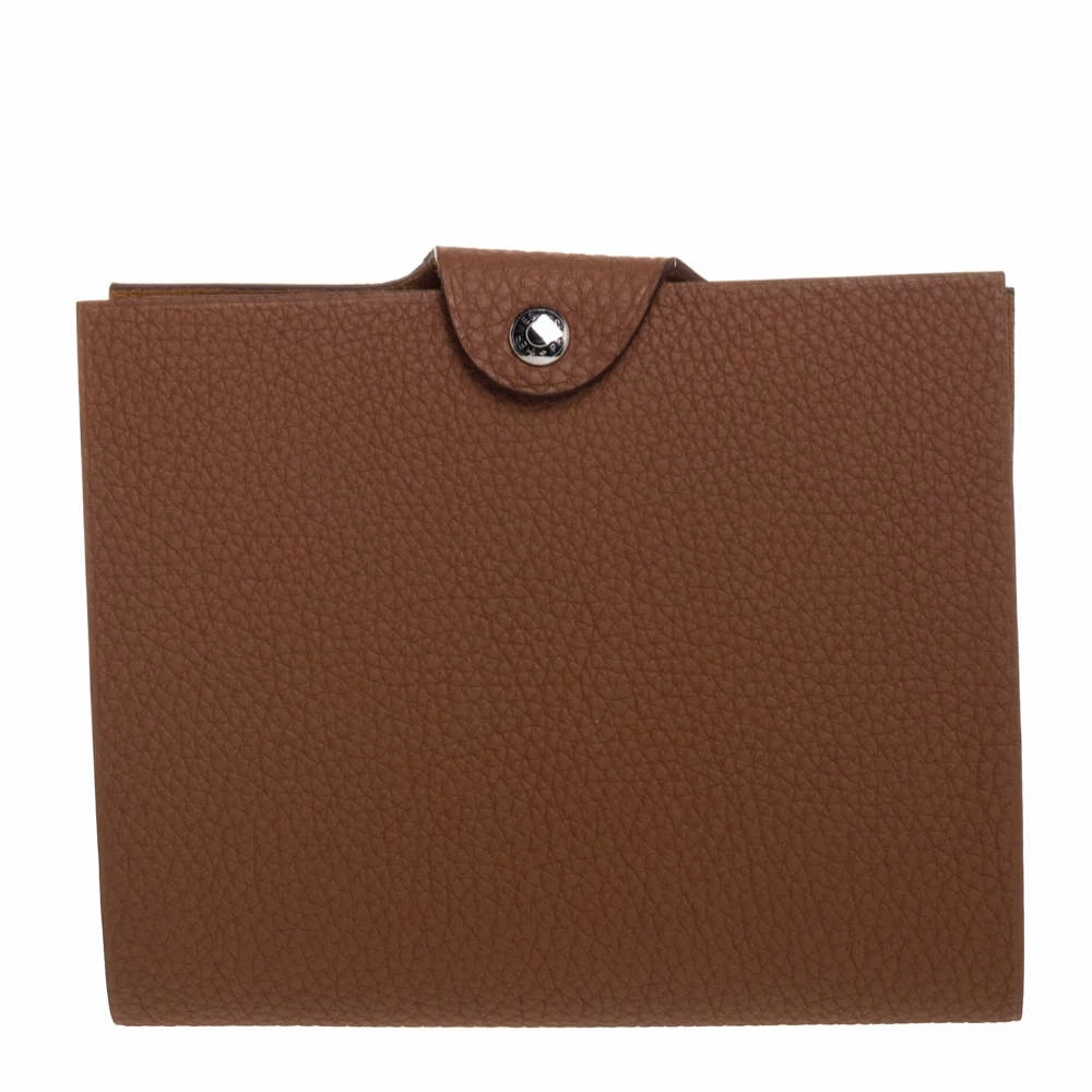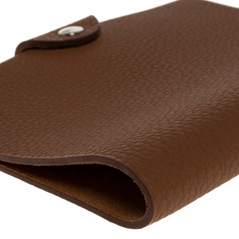 This Hermes Ulysse agenda cover will instantly add style and charm to your favorite notebook. It has been crafted from brown Clemence leather and comes with a snap fastener. Carry this to work or college for a statement-making look.