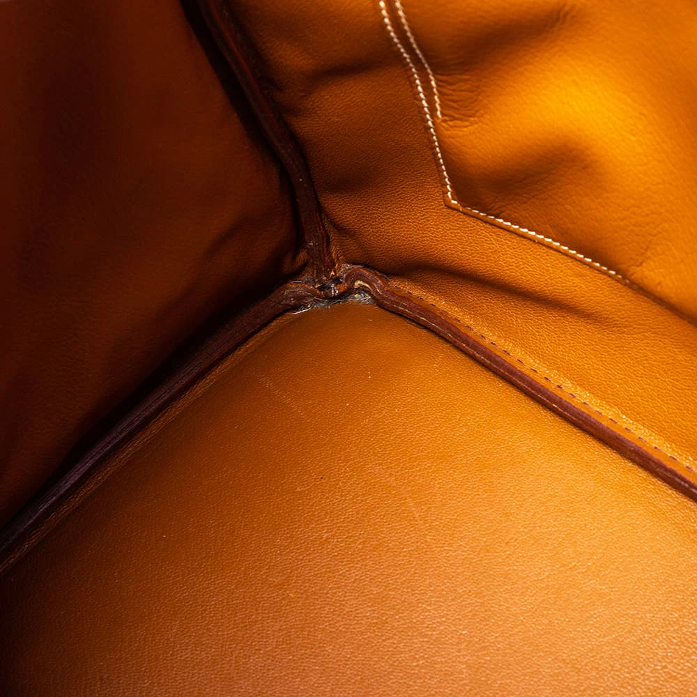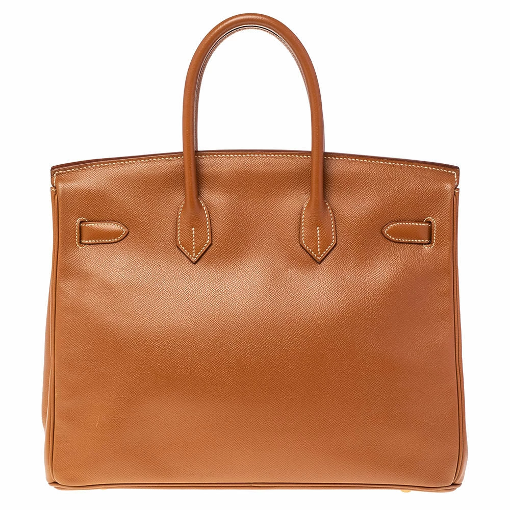A bag that has become a hallmark of luxury and class, the Birkin from Hermès is one of the most coveted bags in the world. Custom-made on the suggestions of Jane Birkin, hence the namesake, this bag is aimed to fit the wants of the fast-paced life of modern women. Timeless design coupled with rich craftsmanship, the body of this Birkin bag is crafted from Courchevel leather. Its foldover top is secured by gold-finished turn-lock closure, accompanied by a leather interior. Complete with dual-rolled handles and studs at the bottom, the Birkin is a heritage that can last many years. High quality and flawless craftsmanship are synonymous with Hermès.
