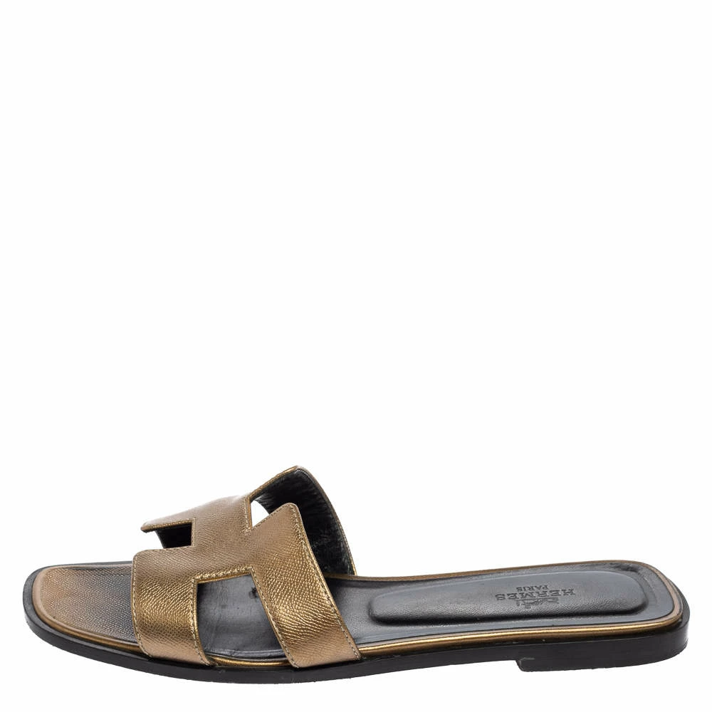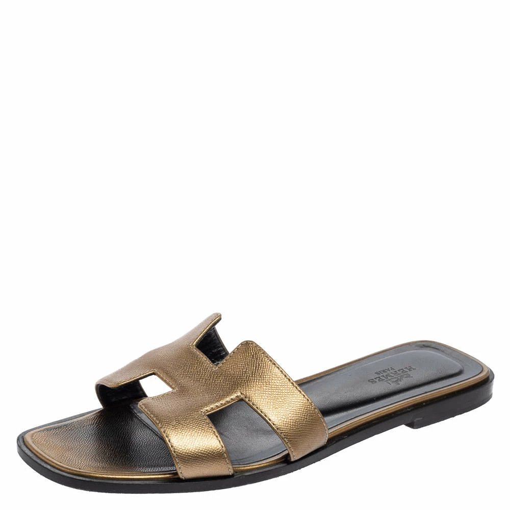 Put your best foot forward this season in these pretty Hermes flat sandals. These Oran sandals have been crafted from leather in Italy and they feature the iconic H on the vamps as well as insoles meant to provide comfort at every step. These sandals are sure to attract admirers!