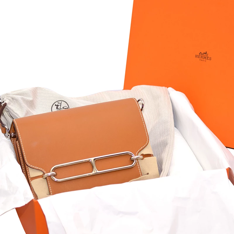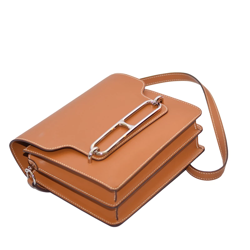 Hermes Roulis is the perfect substitute for the luxurious Constance bag. This compact bag was introduced in the Spring/Summer 2011 collection and is hand stitched to perfection. It has a sharp looking structure, clean lines and a flap front with a chain buckle detail. Crafted from gold leather, the interior is meticulously designed to ensure your belongings will be found in their designated place. Complete with a slip pocket at the rear and a shoulder strap for an easy carriage, this high-style creation deserves to be yours.