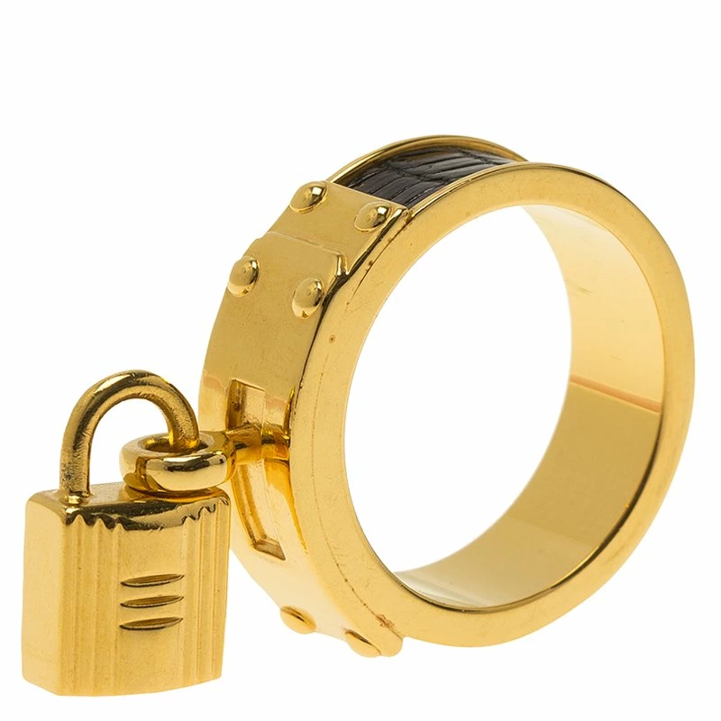 Use this elegant and valuable piece by Hermes to secure your favorite scarf ties in style! The ring is crafted from gold-tone metal and is accentuated with lock detail. replace the knot with this chic ring for a simpler and more fashionable look.