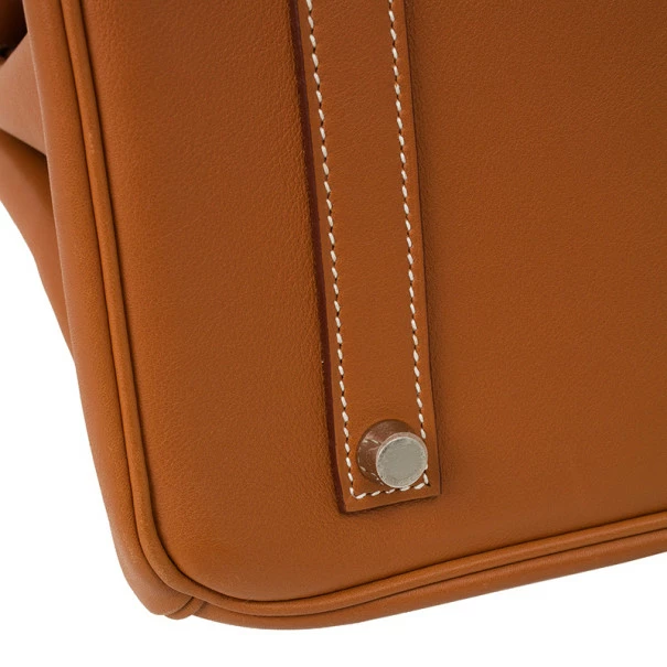 The Birkin is undeniably the most coveted bag in the world. This classic beauty with a twist will truly make you stand out from the crowd. Structured and designed with brown swift leather, this soft to touch leather is one of the lightest leathers. This type of leather reflects light, making colors appear brighter and more vibrant. This bag is finished with the signature flap and belt secured by a turn lock closure and cadena. It opens up to a brown leather-lined interior with one zipped and one open pocket.