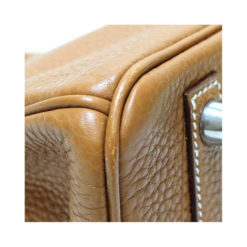 Fashioned in a refined gold Togo Clemence leather body, this iconic Birkin 25 bag from Hermes is a must-have for any Hermes fan. It features a contrast stitch detailing and accented with palladium hardware. It comes fitted with two rolled top handles and offers ample room to stow all your essentials and more.