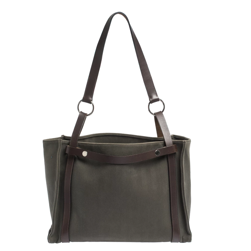 A chic expression of the brand’s considered approach to design, Hermes’ Cabalicol bag has a timeless appeal that will never go out of fashion. Skilfully crafted in France from canvas as well as Vache Hunter leather, its relaxed silhouette features a single handle attached by palladium-plated rings. Discreetly detailed with the Clou de Selle logo, this bag boasts enough room to house all of your daily essentials.