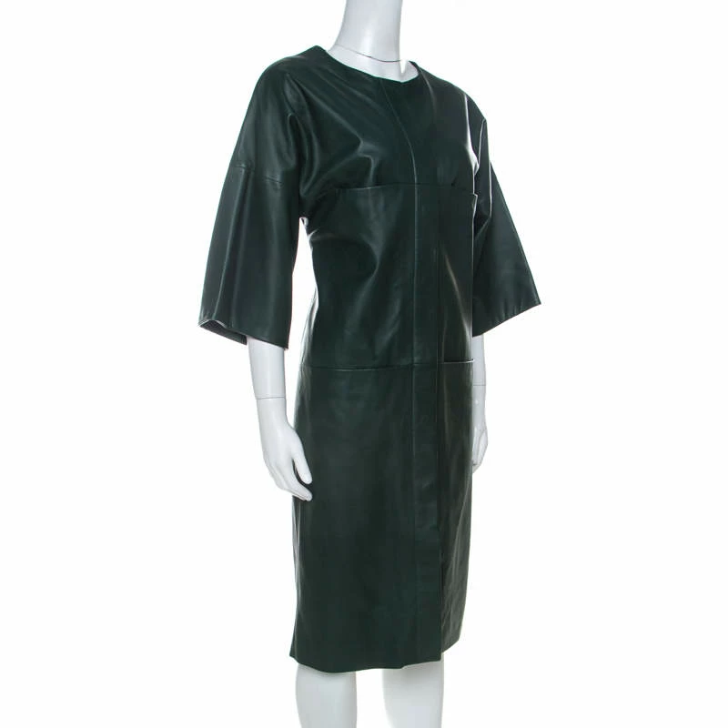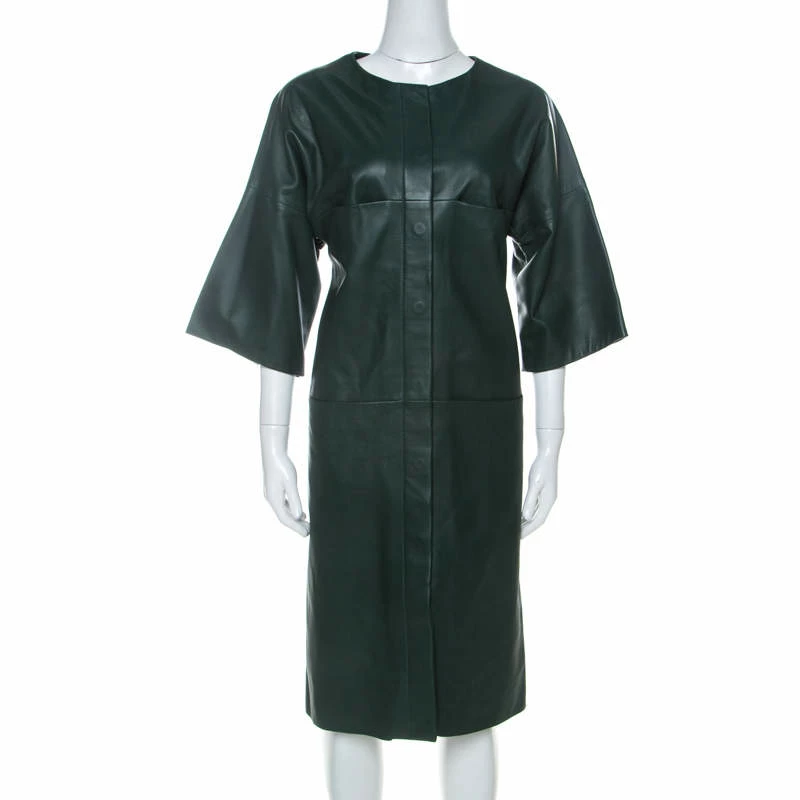 Designed in the most stunning shade of green, this exquisite long jacket from the house of Hermes is a perfect piece for the evening. Featuring a gorgeous lambskin leather body, this creation is styled with concealed button fastenings and wide sleeves. The jacket is an example of the brand’s incredible craftsmanship and attention to detail. It is a luxe rendition of a classic leather jacket and a worthy investment.