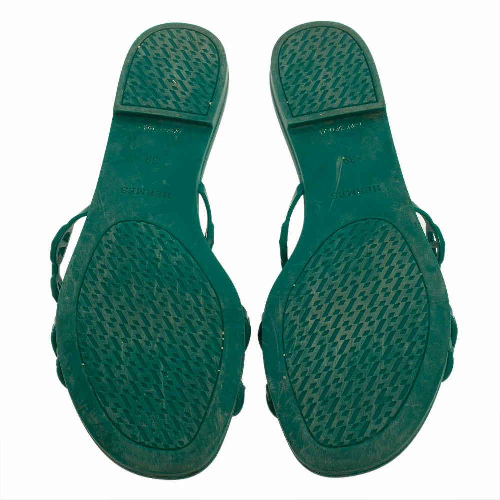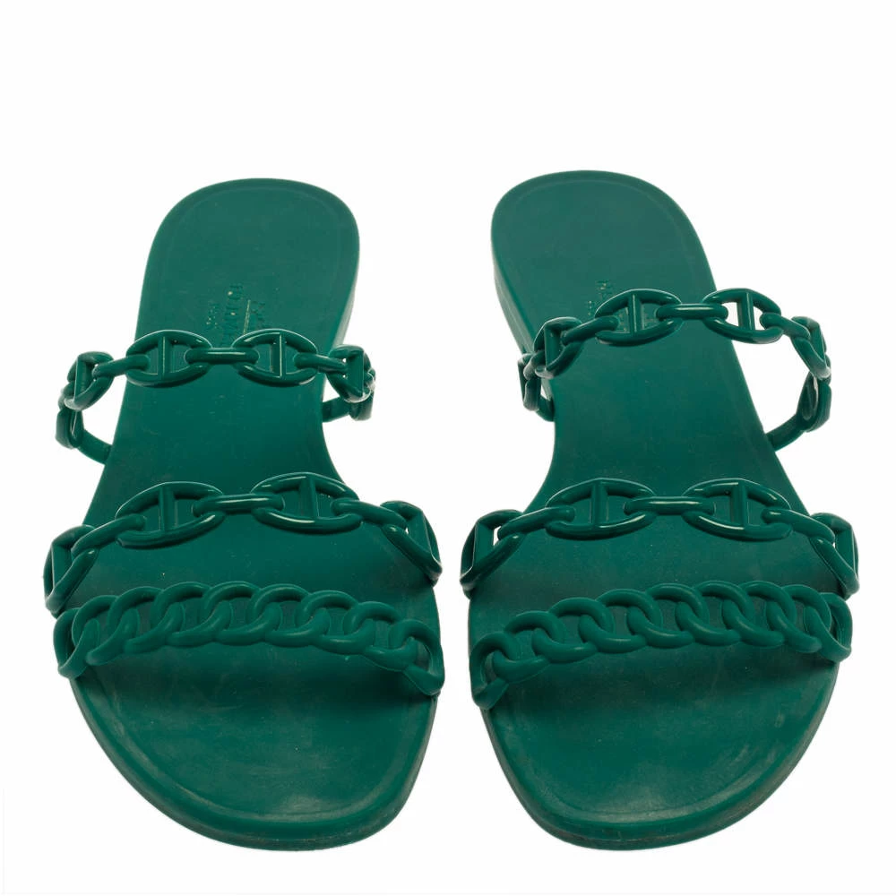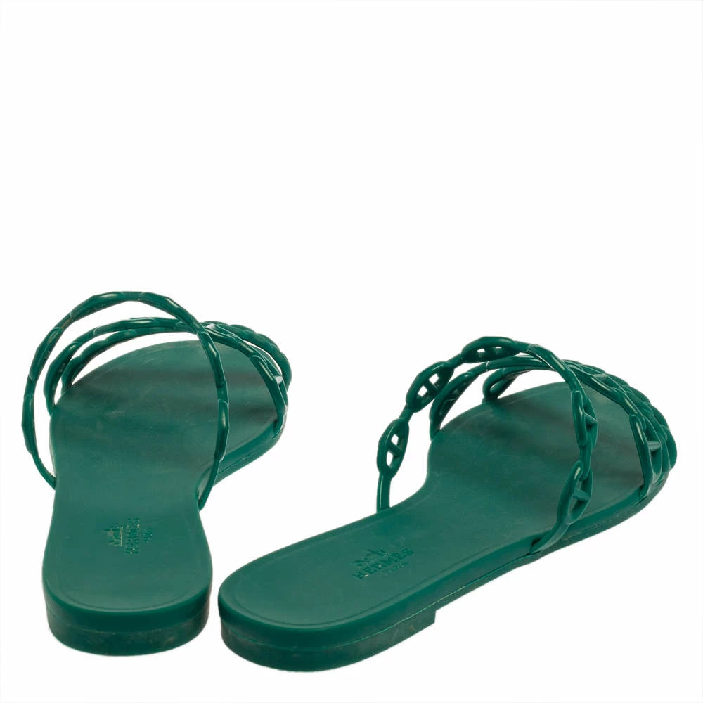 These summer-friendly D’ancre Chaine Rivage sandals by Hermes have been crafted to perfection. Featuring chain-like straps in rubber, the flats are set on a comfortable base. Designed in a green hue, the flat sandals will be a delight to wear.