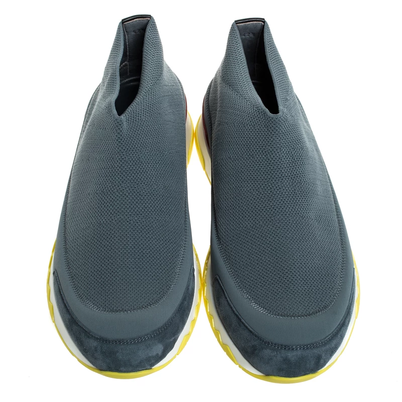 Hermes is known for their sophisticated designs. The exterior of these sneakers has been crafted from stretchable fabric and accented with suede and leather trims, whereas the insides are completely lined with leather. They feature rubber soles. Easy to slip on, this pair of sneakers embodies a true blend of luxury and comfort.