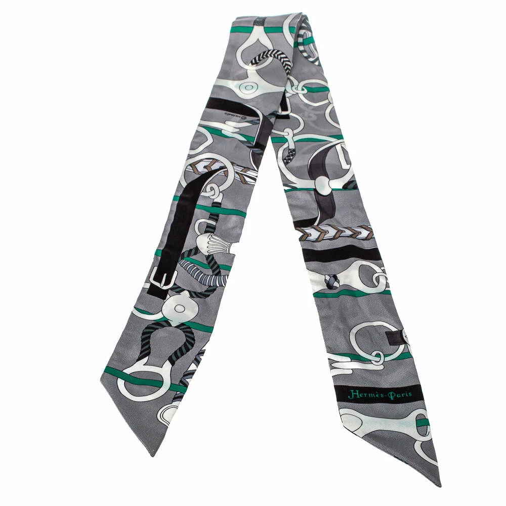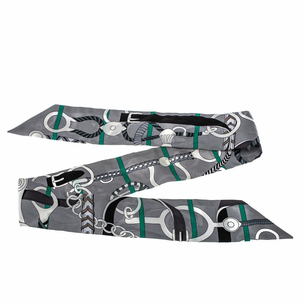 To be tied around your wrist, head, or handbags, twilly scarves are versatile accessories to own. The Twilly scarves by Hermès bring unique designs on fabrics that are smooth and luxurious to touch. This silk one here is beautifully blooming with Panoplie Equestre prints in the grandest of colors.
