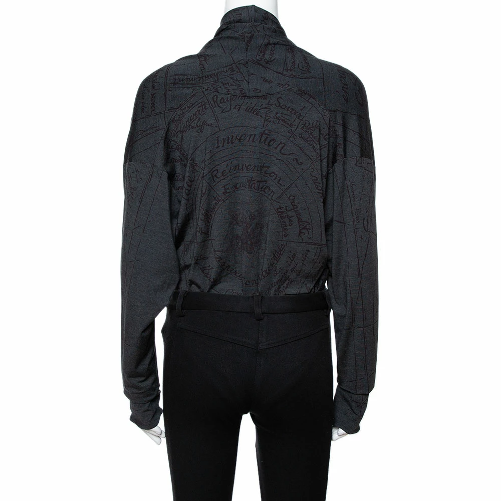 The creations by Hermes are known for their smart silhouettes and sophisticated style to enhance the look of the wearer. This long sleeve bodysuit is a timeless piece crafted from silk material featuring a plunging neckline, wrap accents, and prints all over.