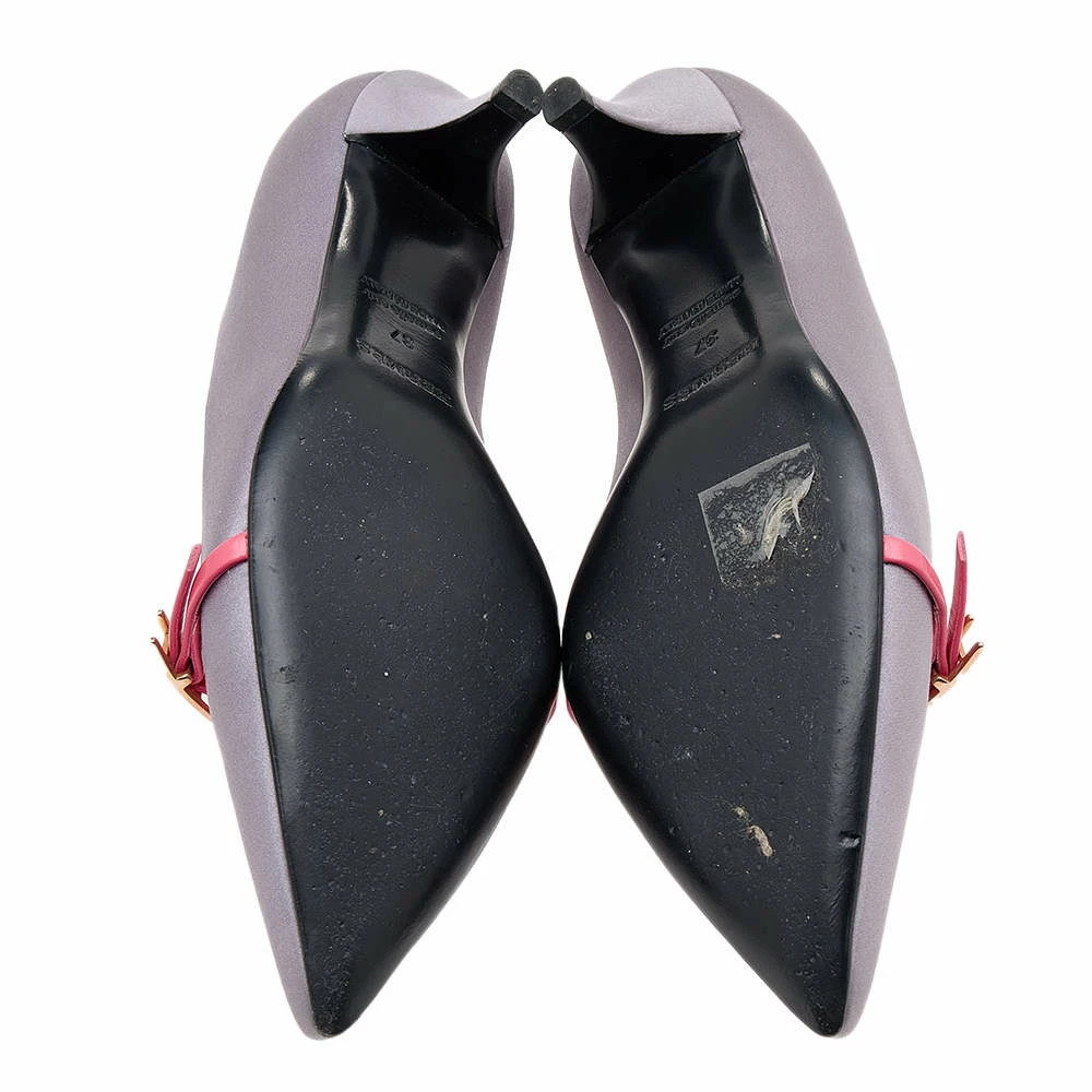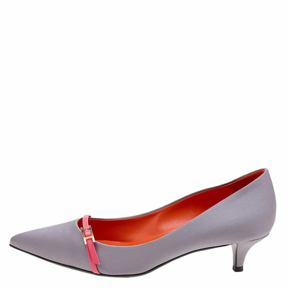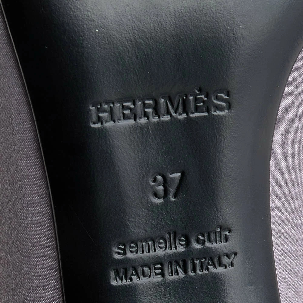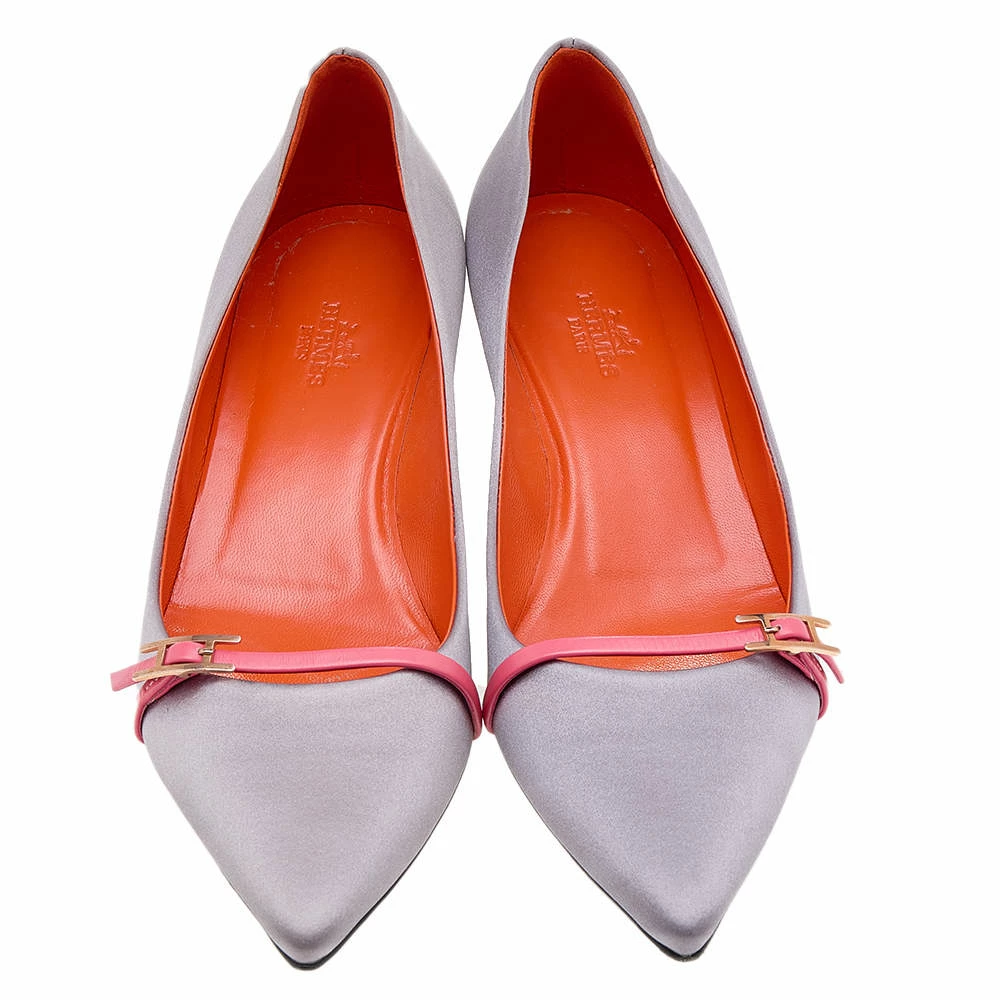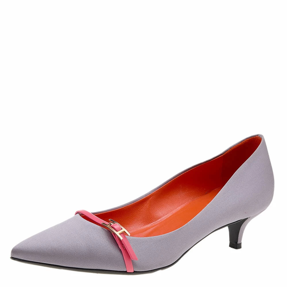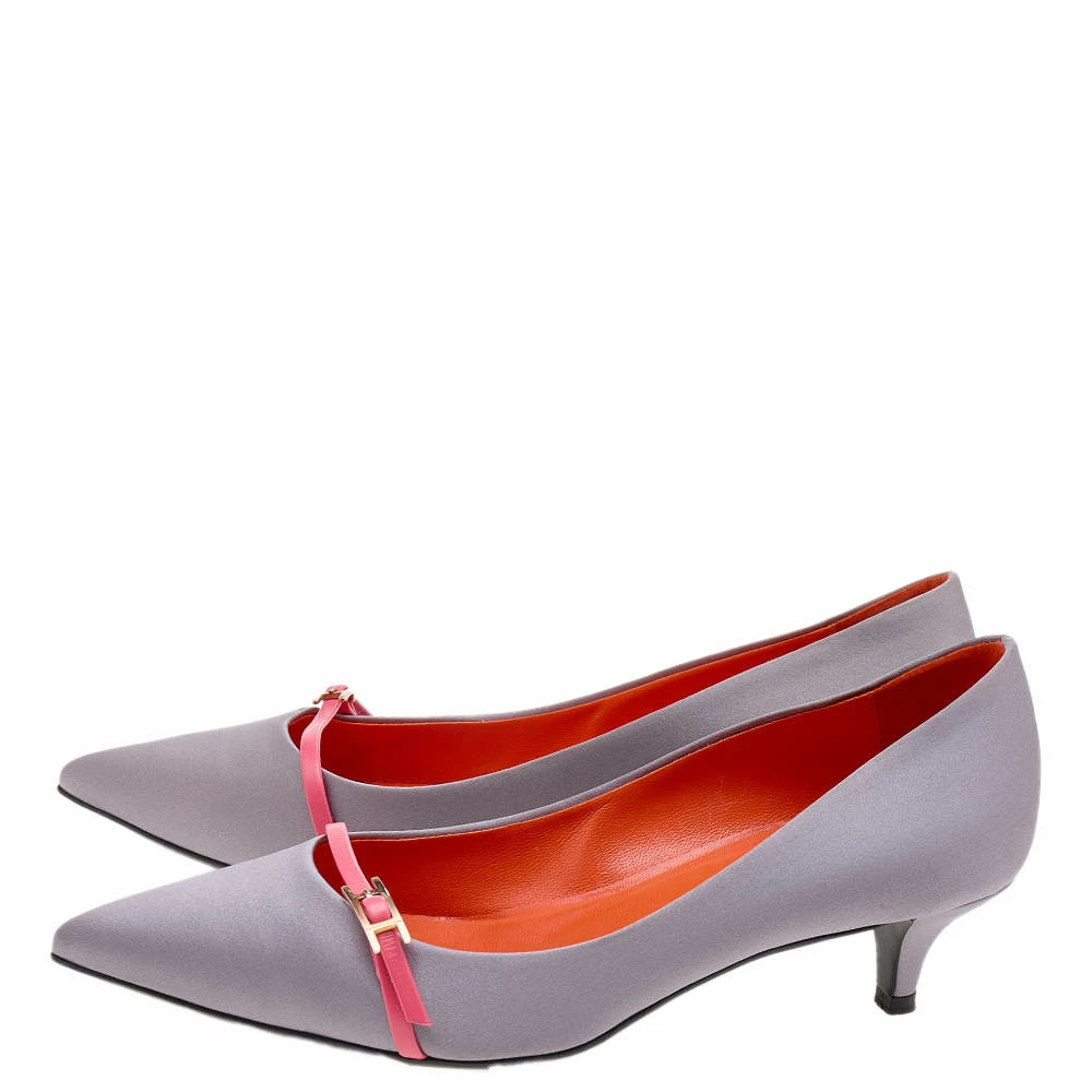 Sleek and stylish, these Lauren pumps from the House of Hermes are here to redefine your ensemble. They are crafted from grey satin, with gold-tone hardware adorning their silhouette. They exhibit pointed toes, a slip-on style, and 4.5 cm heels. Let these gorgeous Lauren pumps be your favorite in no time!