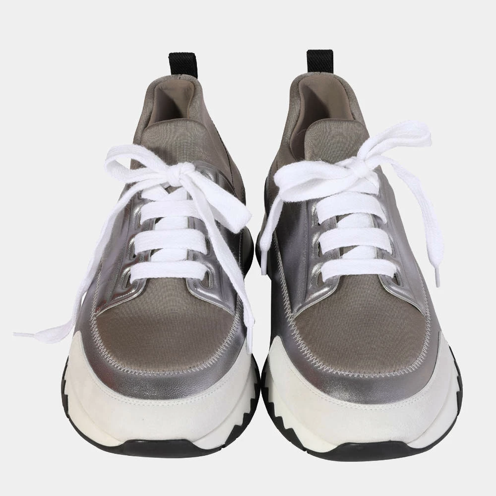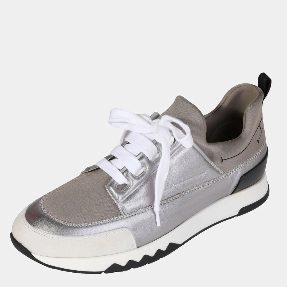 Hermes is known for its designer accessory collections. They bring you this beautiful pair of casual sneakers which have a bronze and silver exterior with crème rubber soles and white laces. These kicks are perfect for your next date when paired with casual trousers and a buttoned-up shirt.
