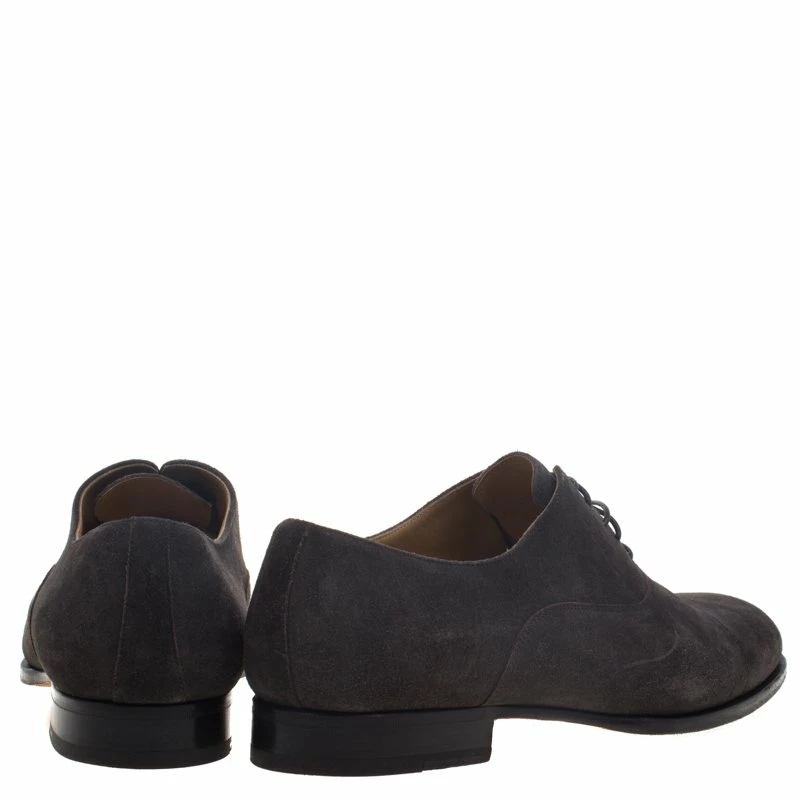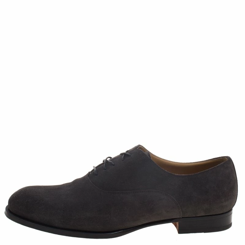 A dapper style from Hermes, these Napoli oxfords in grey suede come with a lace-up vamp and stitch details that add an edge to the design. The leather insole is embossed with the brand label. Consider this pair of oxfords to team up with your work attires and smart casual looks.