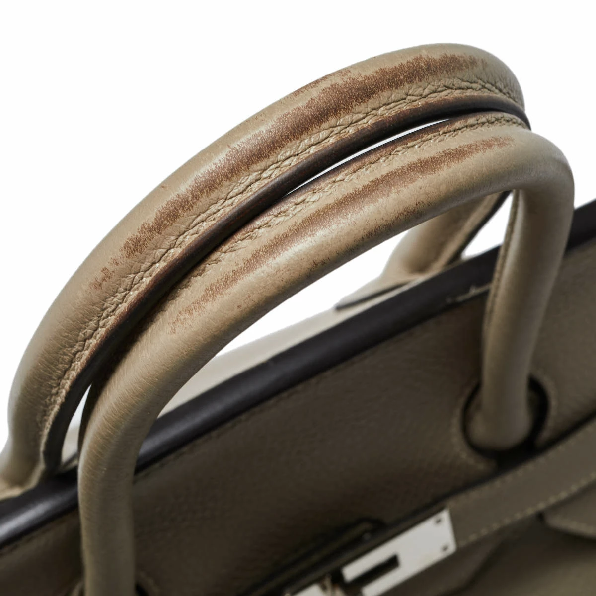 Hermes Birkin was inspired by Jane Birkin and is one of the most desired handbags in the world. A timeless classic that never goes out of style. Handcrafted from the highest quality of leather by skilled artisans, it takes long hours of rigorous effort to stitch a Birkin together. Crafted in France from leather, the bag features dual top handles and a padlock with its keys within a clochette. The bag comes with palladium hardware and has a spacious leather-lined interior that will hold all your belongings. High quality and flawless craftsmanship are synonymous with Hermes. Durable and resistant to wear, the Birkin is a heritage that can last many years.