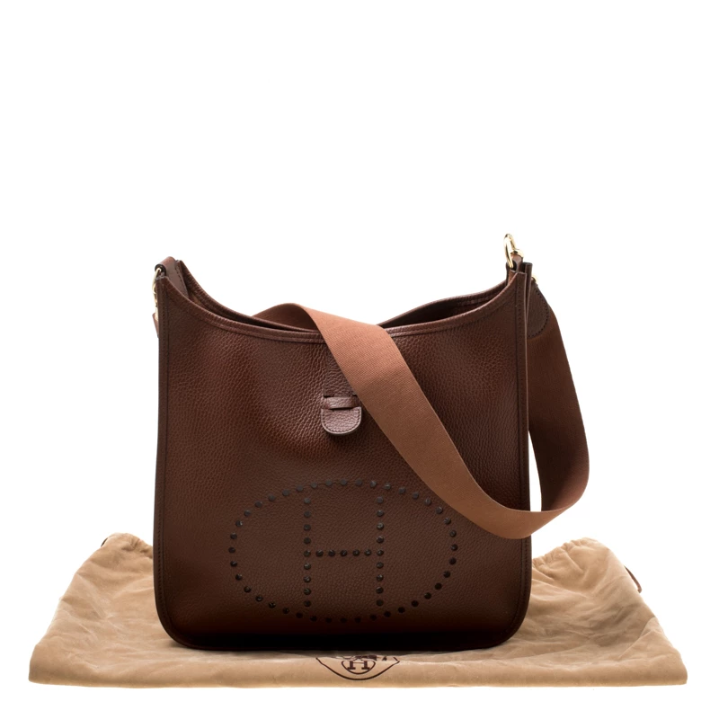 The Evelyne is a bag known and praised by lovers of Hermès and luxury alike. It comes in a range of sizes from TPM to TGM. This pretty one here is in a GM size, which is the second largest in the existing range. It is crafted from leather and detailed with the signature elements of the leather tab closure, the saddle-like shape and the perforated H on the front. The bag is made ready with a leather interior for your essentials and a shoulder strap that allows you to use it as a crossbody.