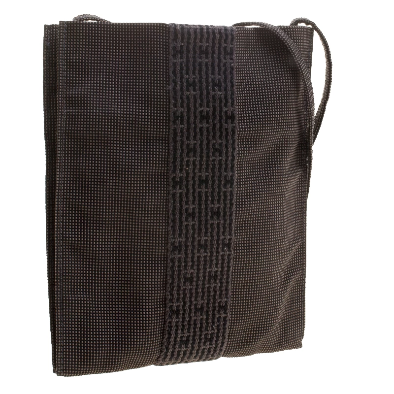 Made of canvas, this black pouch pochette from the house of Hermes is a creation worthy of being yours. It is designed with an H trim along the middle, a shoulder strap and a fabric interior to carry your small essentials. The pouch is well-made and right on style.