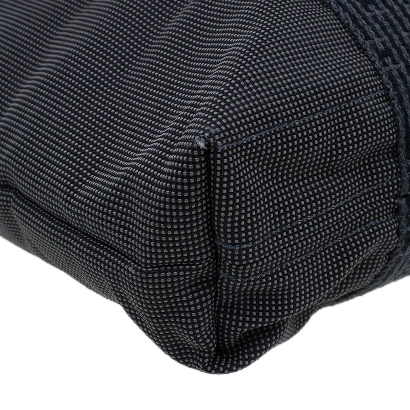 Casual and cool, this Hermes tote will keep your essentials handy and organised while you are on a shopping spree! Crafted in grey canvas, it features a grey and blue H canvas straps extending to form double top handles, and three exterior pockets. The zip-enclosed fabric interior includes one patch pocket.