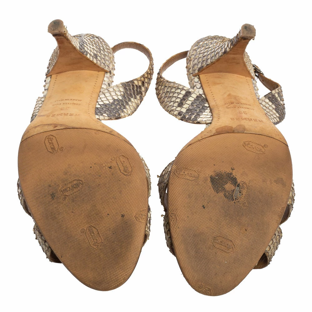 These Night sandals made by Hermès, with their minimalistic style and faultless shape, provide your feet with the best experience. They feature python leather on the exterior, which is highlighted by silver-toned implements, slingbacks, and sturdy heels. Pair these sandals with your everyday outfit to create a chic style.