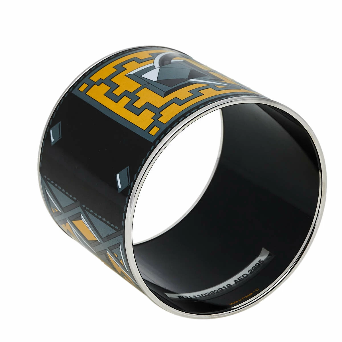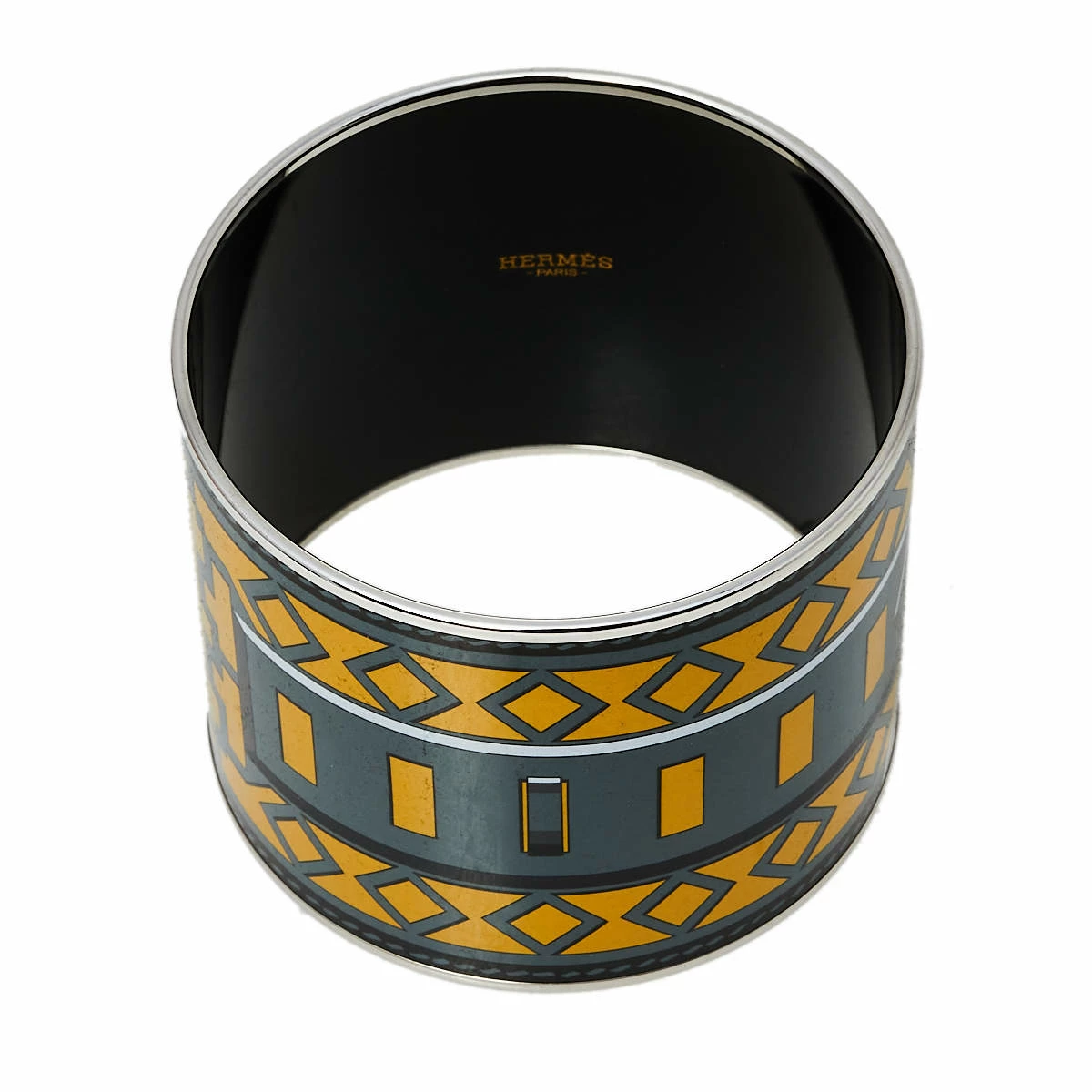 Hermes presents this stylish and chic enamel bracelet. It features a print throughout inspired by the house’s iconic Collier De Chien bracelet. Hallmark details on the inside bring this creation to completion.