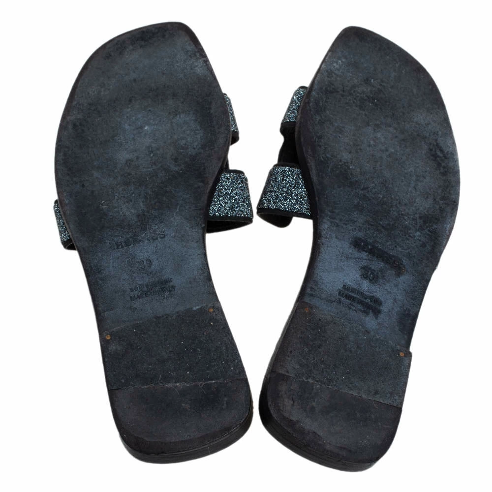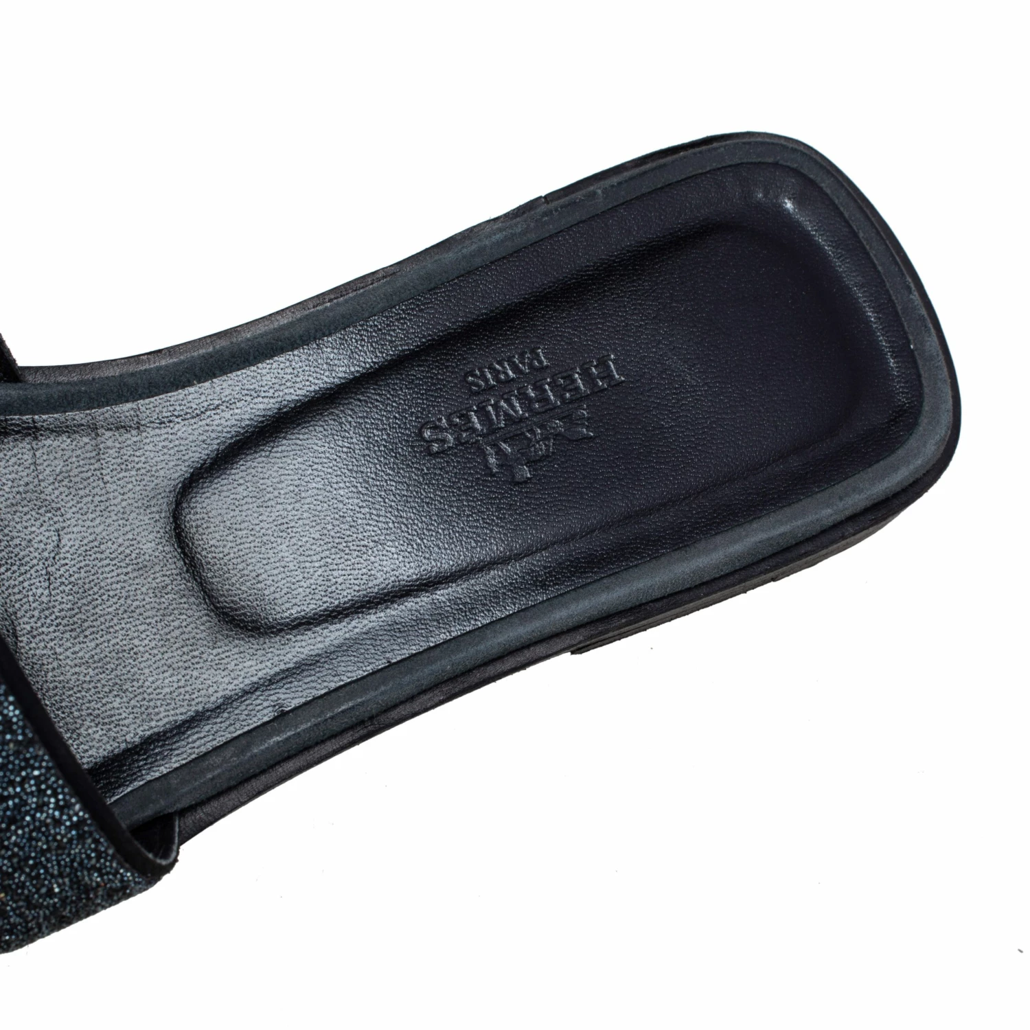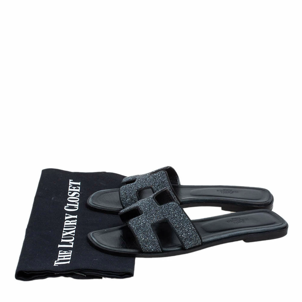 Put your best foot forward this season in these pretty Hermes sandals. These black Oran sandals have been crafted from suede in Italy and they feature crystal embellishments the iconic H on the vamps as well as insoles meant to provide comfort at every step. These sandals are sure to attract admirers!